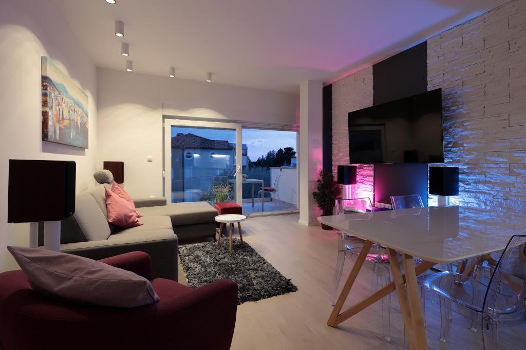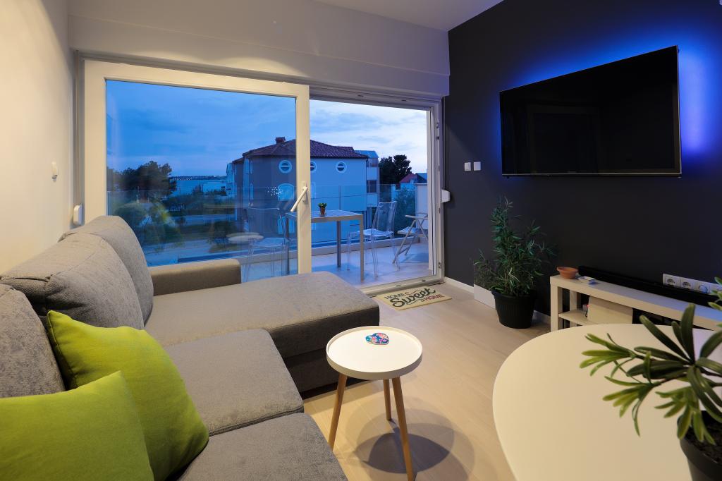 Apartmány jsou luxusně vybaveny invertorovou klimatizací Mitsubishi v každém pokoji, velkou diagonální televizí se všemi evropskými satelitními programy, Netflix, moderní kuchyní s indukční varnou deskou, koupelnou se sprchovým koutem, velkou moderní balkónovou markýzou, která se zvedá a klesá, a velkým apartmánem "Alan 3 “ má stůl s velkou úhlopříčkou 4K monitoru. Půjčit si můžete také elektrokola s dojezdem přes 60 km na jedno nabití baterie.