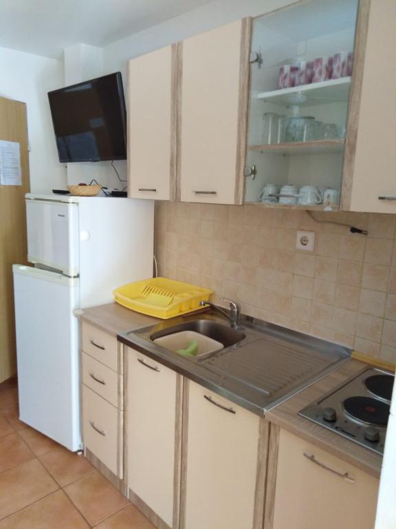 Biba Apartmány se nachází v Zukve v blízkosti historického města Nin na pouhých 150 metrů od pláže. V našem okolí existují různé druhy pláží (písek, štěrk a kamenitá pláž). V blízkosti trhu a nabízet čerstvé ovoce a zeleninu. Přátelští hostitelé a parkoviště pro hosty. Blízkost Royal Beach Nin, turistické centrum Zaton, léčivým bahnem Nin ... A4 2 ~ apartmán pro čtyři osoby plus dvě přistýlky (55 m2) Byt má terasu, obývací pokoj s TV, kuchyň, dvě ložnice a koupelnu.