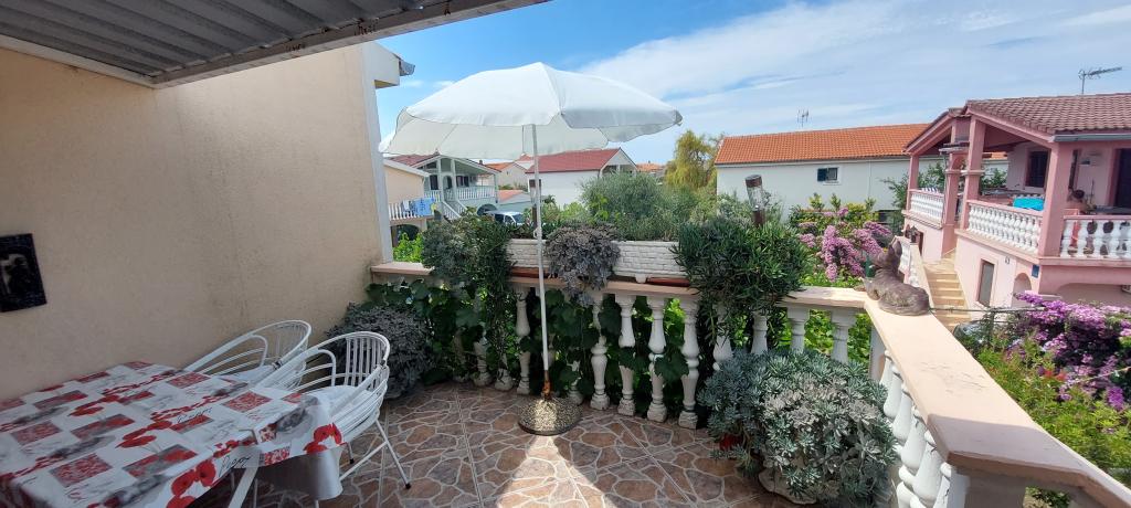 Byt je kompletně zařízený. To má dvě velké ložnice, koupelna, kuchyň propojená s velkým obývacím pokojem, terasa s výhledem na moře, klimatizace, internet (Wi-Fi). Parkování je ve dvoře. Mám gril, takže můžete mít grilování každý den. Nakupujte v naší ulici, v těsné blízkosti domu. Na pláži se nachází v blízkosti, 2-3 minut chůze. Na pláži jsou doškovými slunečníky a lehátka, které si lze pronajmout za den. Vzdálenost do centra Nina je nutné 3 minuty autem do města Zadar 15 minut jízdy autem. Plně zařízený byt se nachází v klidné části obce Vrsi-Zukve.