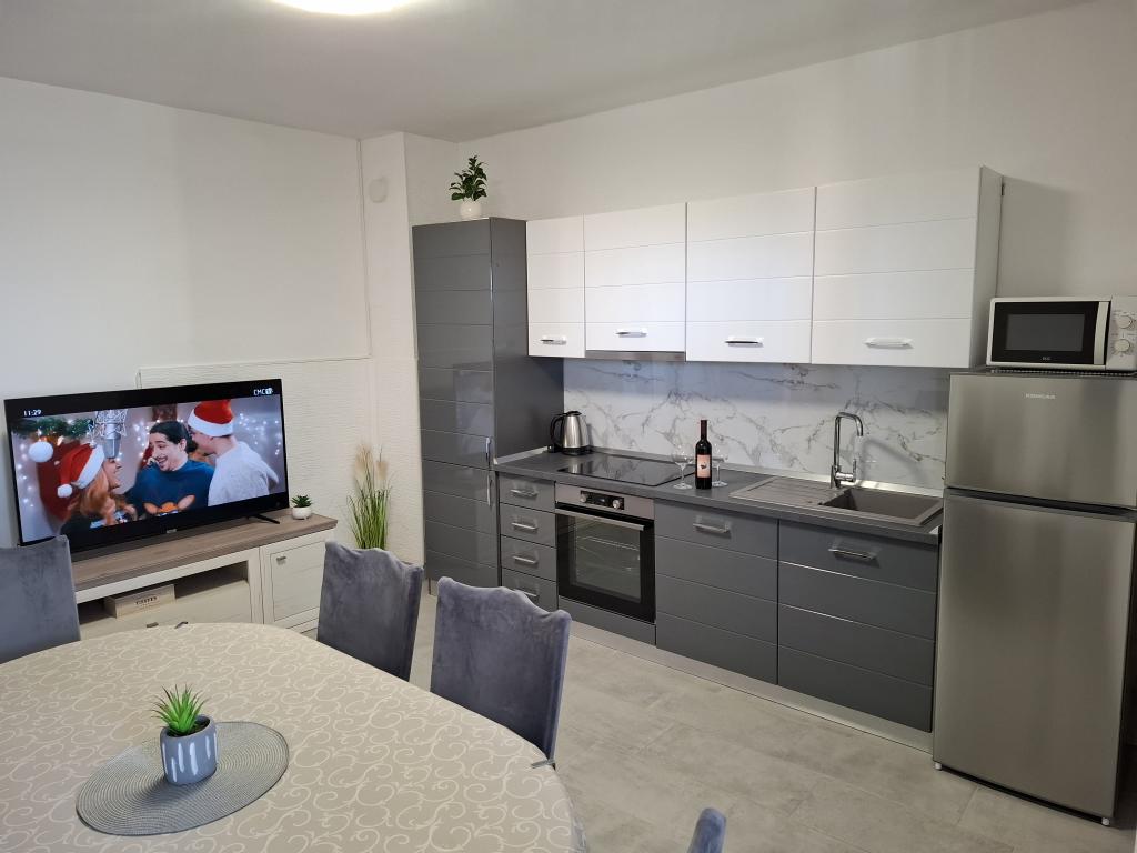 Apartmány Tomislav se nachází ve městě Vrsi v klidné a tiché oblasti, ideální pro dovolenou, s nádherným výhledem na moře, klimatizované apartmány jsou 130 m2, 100 m2 a 90 m2, prostorné a velké, s velkými terasami pro relaxační setkání , přijďte si užít dovolenou.