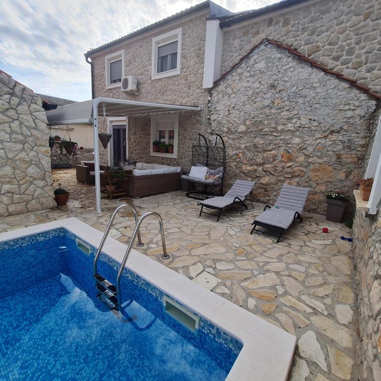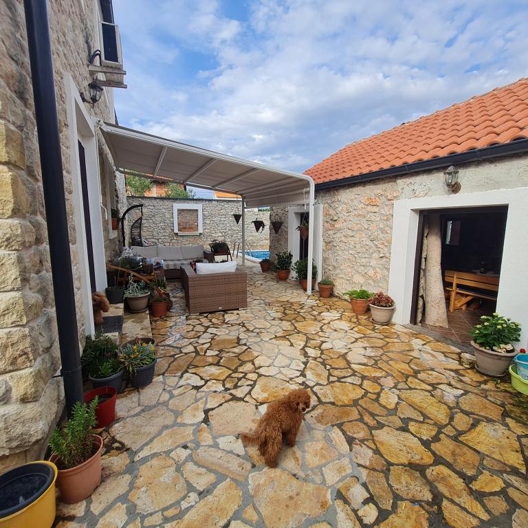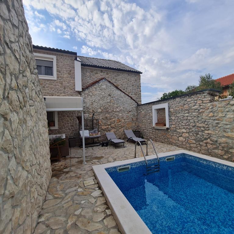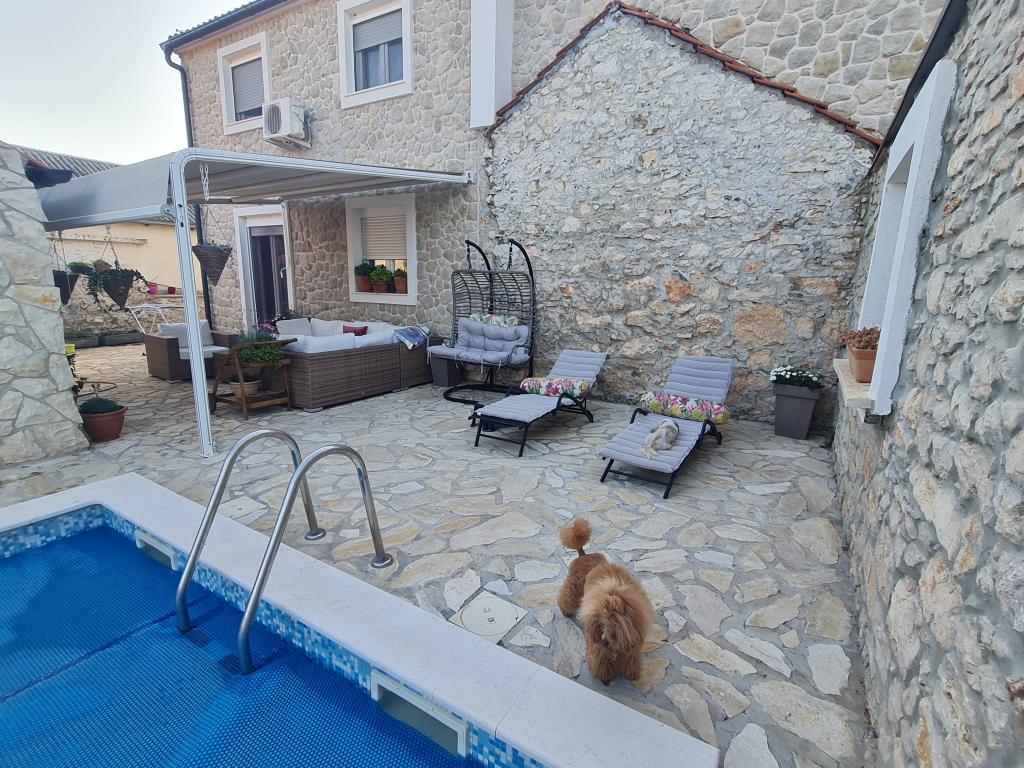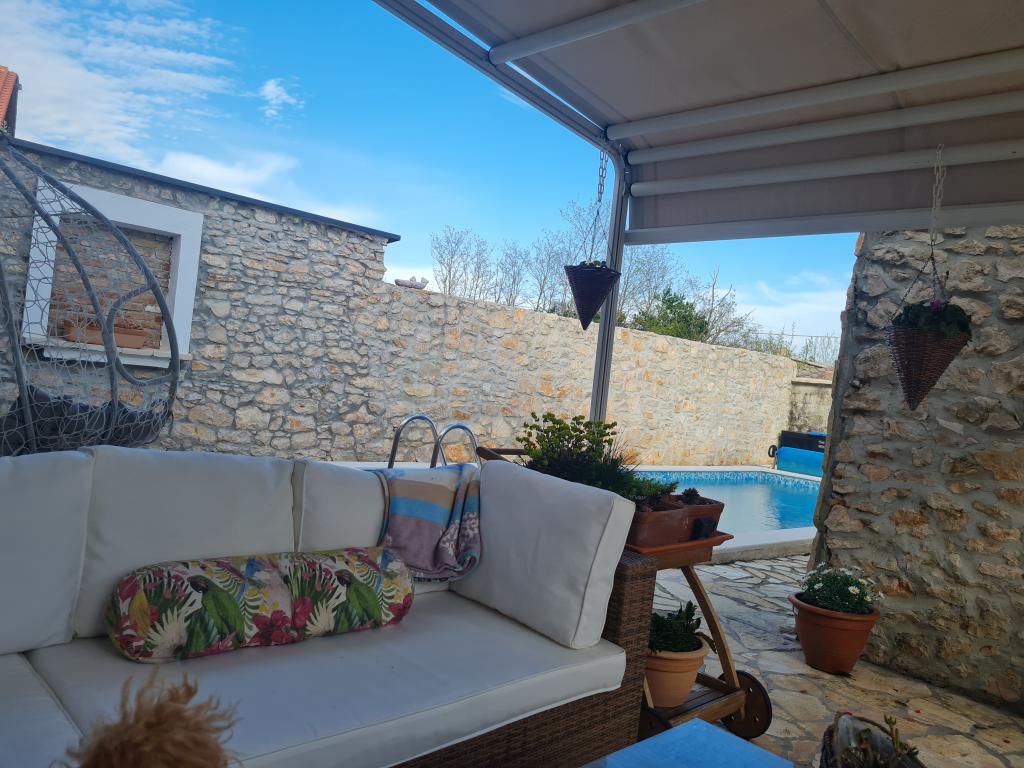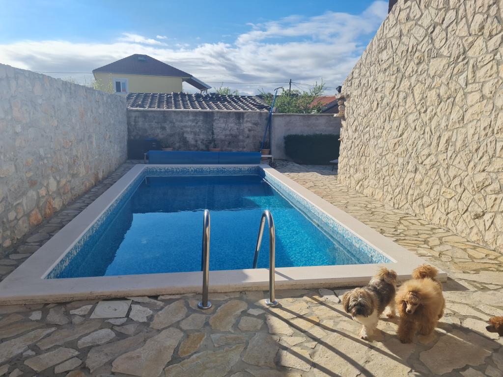 Kompletně zrekonstruovaný rodinný dům na předměstí Nin, apartmány místo Nin. Krásně a harmonicky zařízené, se 3 ložnicemi. . Dva pokoje s manželskou postelí, jeden pokoj se 3 lůžky. . V obývacím pokoji rohová sedací souprava a křesla. V domě je kamenná taverna pro příjemné posezení s přáteli a rodinou. Nádvoří je intimně obehnáno zdmi, kde máte naprostou intimitu. Dále máte k dispozici vyhřívaný bazén o velikosti 8x3,5 a jacuzzi pro 5 osob 2x2