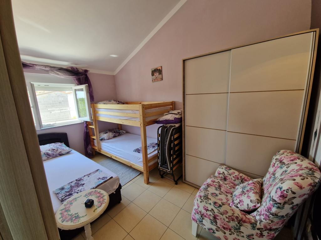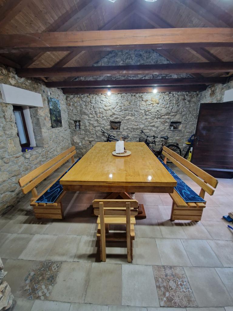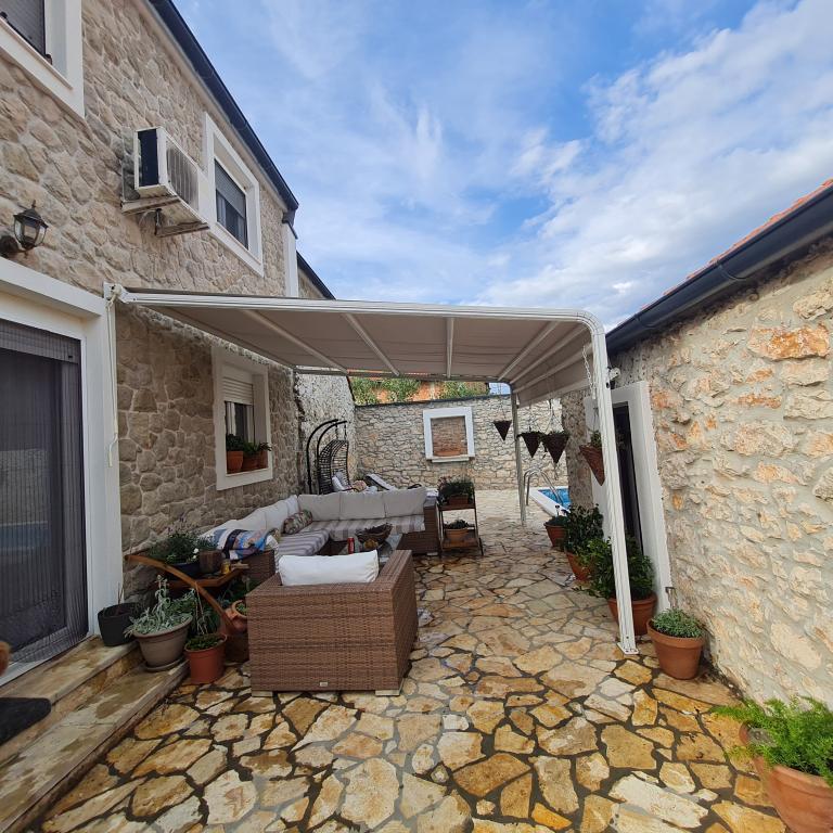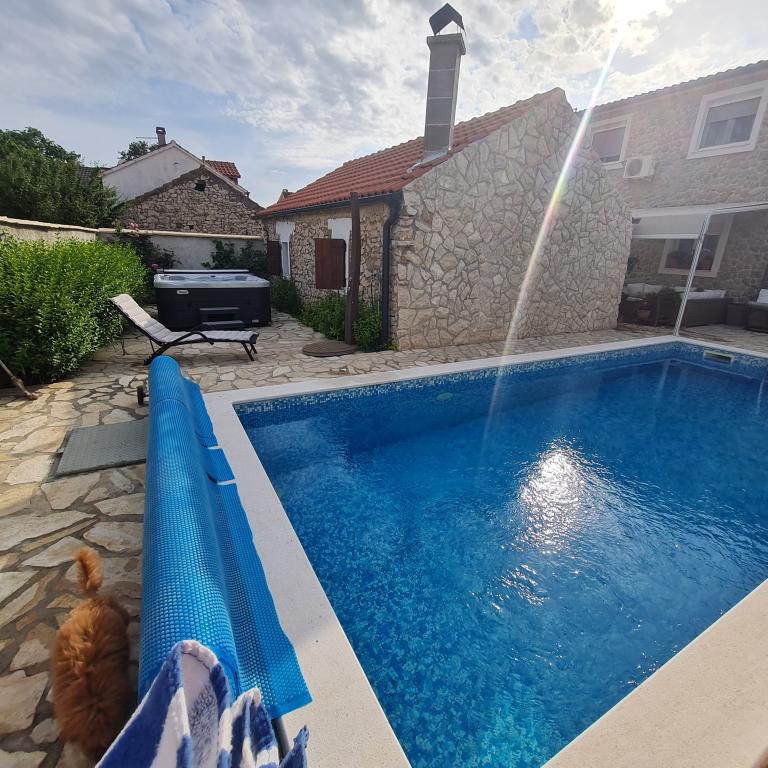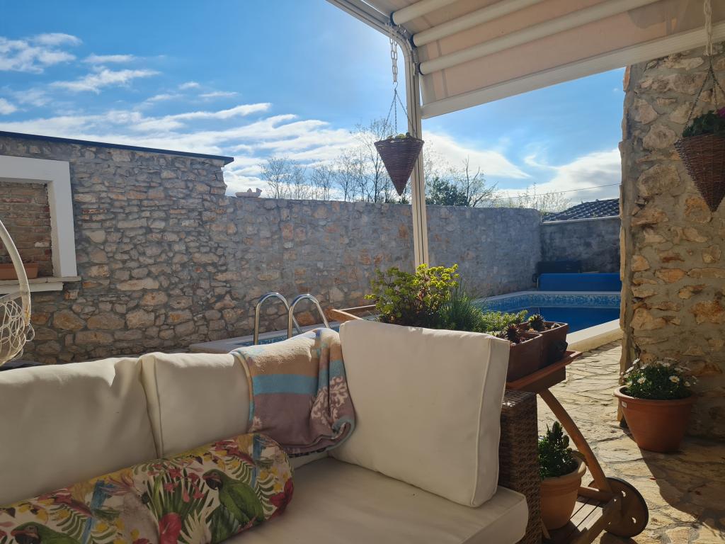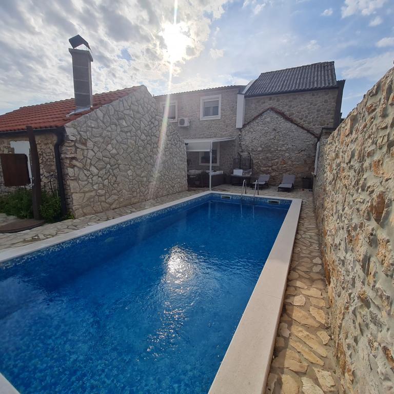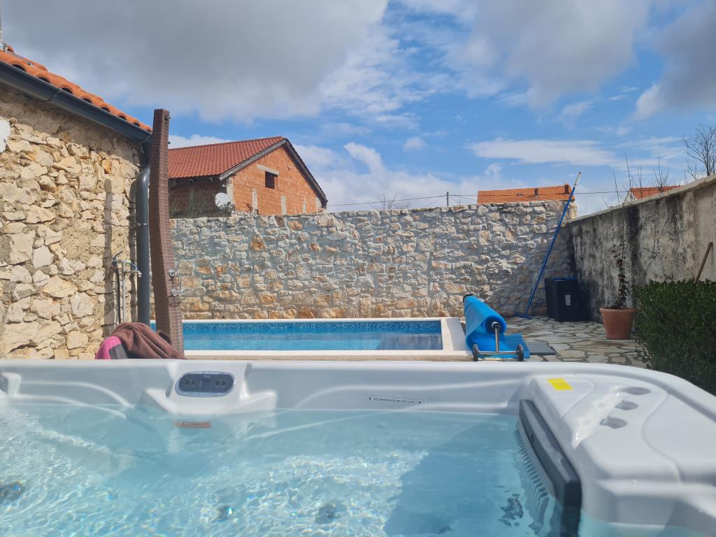 Kompletně zrekonstruovaný rodinný dům na předměstí Nin, apartmány místo Nin. Krásně a harmonicky zařízené, se 3 ložnicemi. . Dva pokoje s manželskou postelí, jeden pokoj se 3 lůžky. . V obývacím pokoji rohová sedací souprava a křesla. V domě je kamenná taverna pro příjemné posezení s přáteli a rodinou. Nádvoří je intimně obehnáno zdmi, kde máte naprostou intimitu. Dále máte k dispozici vyhřívaný bazén o velikosti 8x3,5 a jacuzzi pro 5 osob 2x2