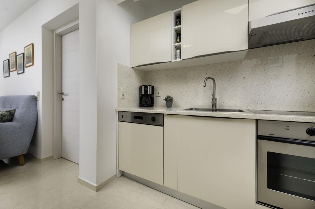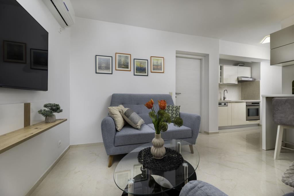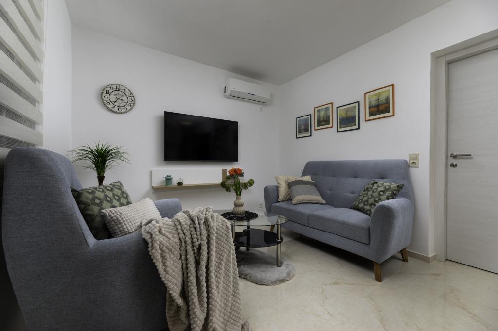 Tento nově zrekonstruovaný apartmán v přízemí, který se nachází v klidné části Njivic na ostrově Krk, nabízí ideální kombinaci pohodlí a uvolněné středomořské atmosféry. Je ideální pro rodiny nebo menší skupiny, které si chtějí užít dovolenou u moře v klidu a soukromí. Apartmán má dvě prostorné ložnice, moderní koupelnu a další samostatnou toaletu. Jedna z ložnic má malý pokoj s přistýlkou. Plně vybavená kuchyň a útulný obývací pokoj poskytují vše pro pohodový pobyt. Zvláštní výhodou je krytá terasa obklopená zelení, ideální pro ranní kávu, rodinné jídlo nebo večerní relaxaci. Hosté mají k dispozici klimatizaci, Wi-Fi, soukromé parkoviště, venkovní sprchu a gril. Pláž je vzdálená pouhých 600 metrů a v blízkosti se nacházejí restaurace, obchody a veškeré potřebné vybavení pro bezstarostnou dovolenou. Užijte si křišťálově čisté moře, procházky podél pobřeží a autentickou ostrovní atmosféru, která poskytuje dokonalou rovnováhu mezi odpočinkem a aktivitou.