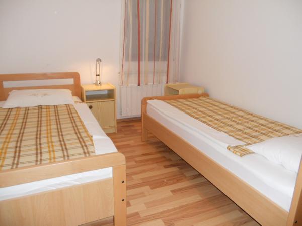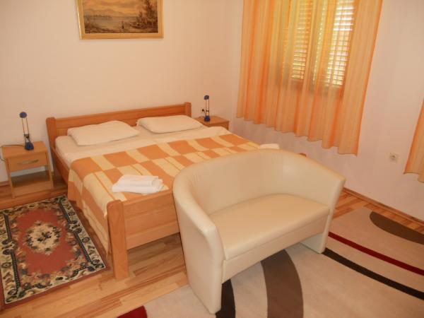 Velmi pěkný starší pár, byty velké, bez poskvrny čisté, velmi dobře vybavené. Lůžka velmi pohodlné. Spousta skříní. Velká lednice s mrazákem. Mikrovlnná trouba. Každý apartmán má zastíněnou terasu, která je velmi cool a pohodlné, si můžete vychutnat jídlo ve stínu. Velmi chladné místo velení, zejména s malými dětmi, kuchyň kompletně vybavená (může hrnce, pánve, příbory, talíře, pánve, krájecí desky-jeden připravovat jídlo sami). Neexistuje žádná klimatizace, což považuji za plus, a to zejména pro naše krku a apartmány je v pohodě, jste měli jen vzpomenout zavírat žaluzie. Výstupy z apartmánů v zahradě, pryč z ulice (důležité pro děti). Kryté parkování. Opravdu doporučuji všem!