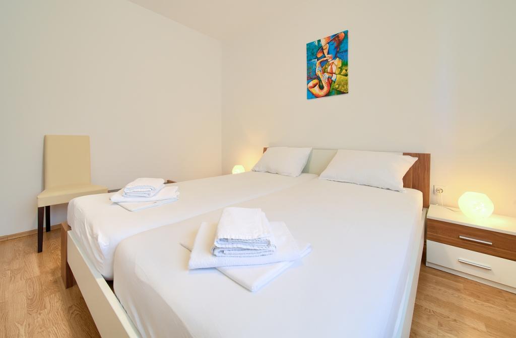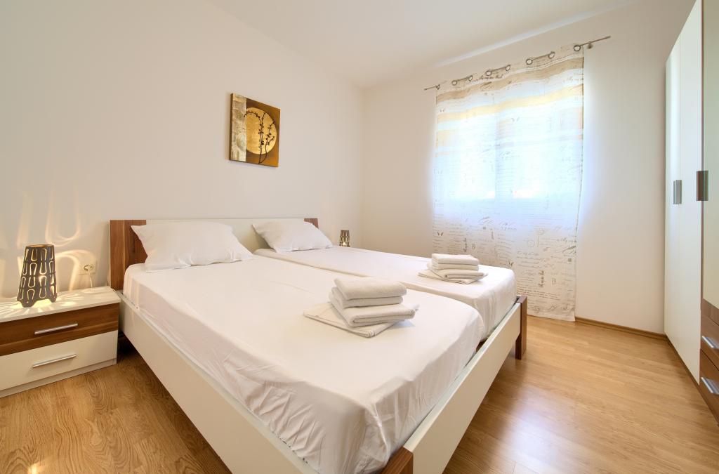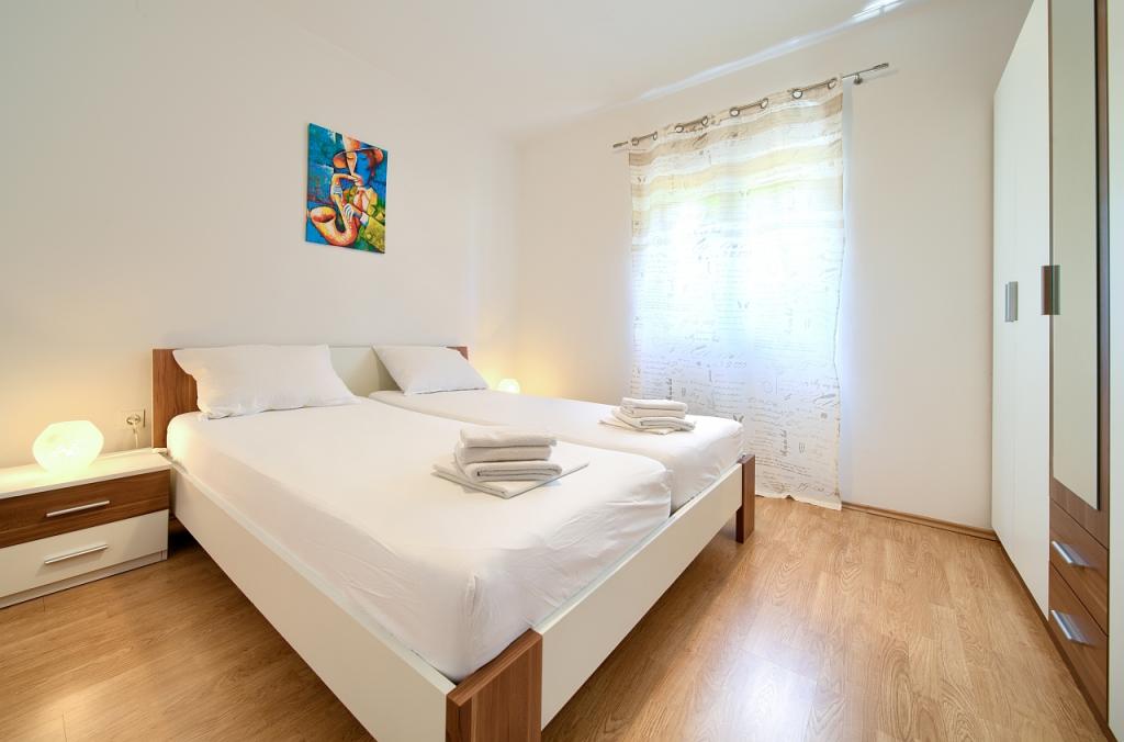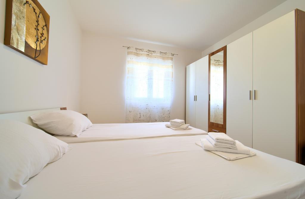 Apartmány jsou nedílnou součástí rodinného domu, který se nachází v klidné části Njivica. Na zahradě je všem hostům k dispozici gril s lavičkami k posezení. Apartmán A4 se nachází v přízemí. Skládá se ze 2 ložnic s manželskou postelí, koupelny se sprchovým koutem, obývacího pokoje, kuchyně s jídelnou a terasy. Byt A2+1 se nachází v podkroví domu. Skládá se z ložnice s manželskou postelí a normální postelí, koupelny se sprchovým koutem, chodby, jídelny s kuchyní a obývacím pokojem a balkonu. V obou apartmánech jsou k dispozici ručníky, ložní prádlo, internet a satelitní TV.