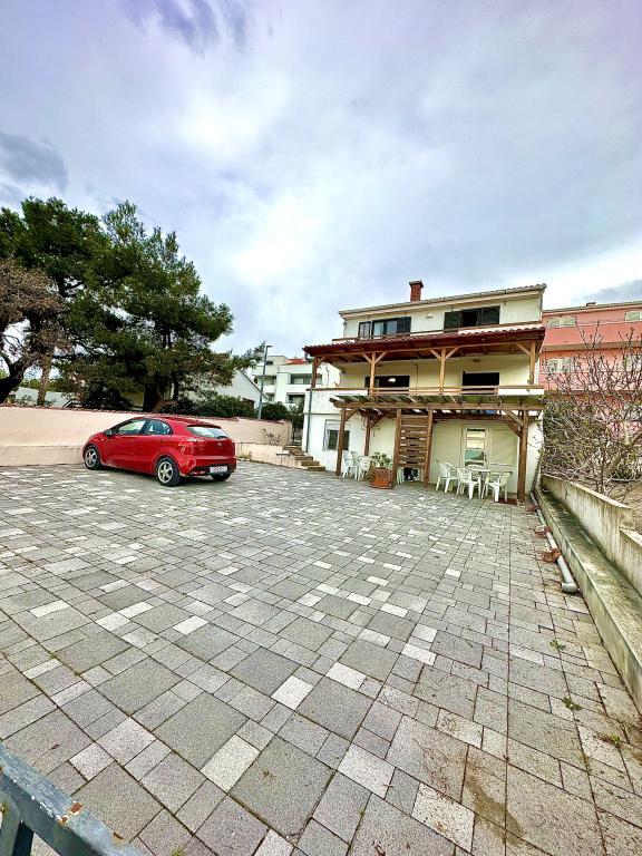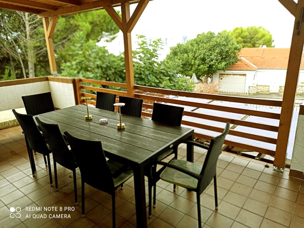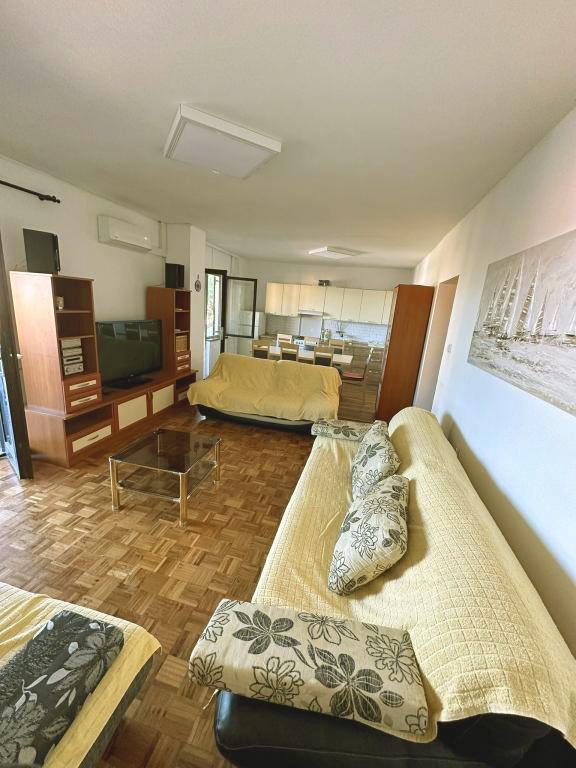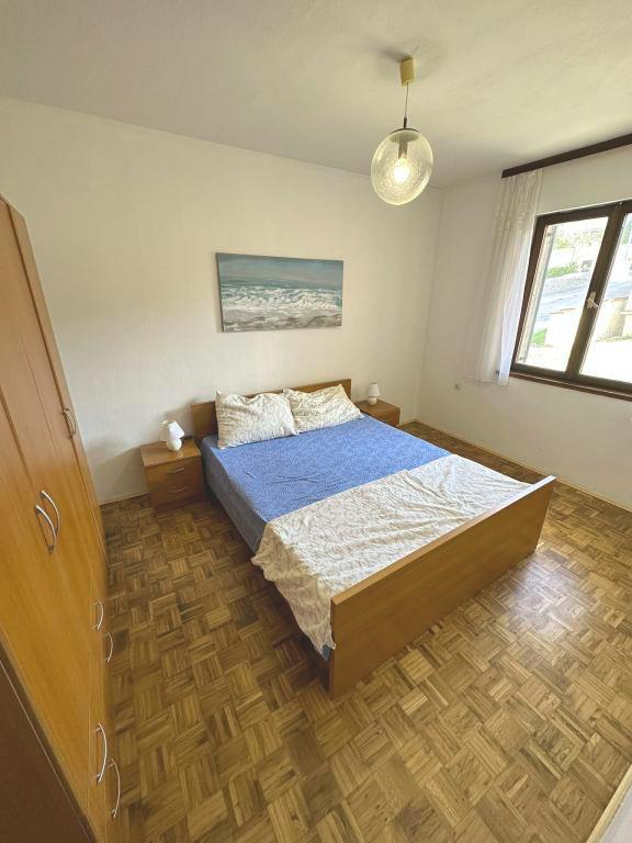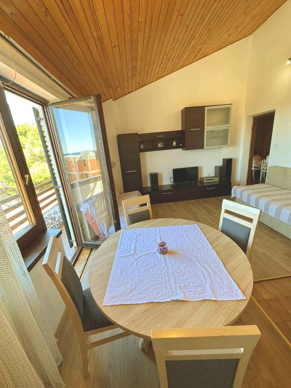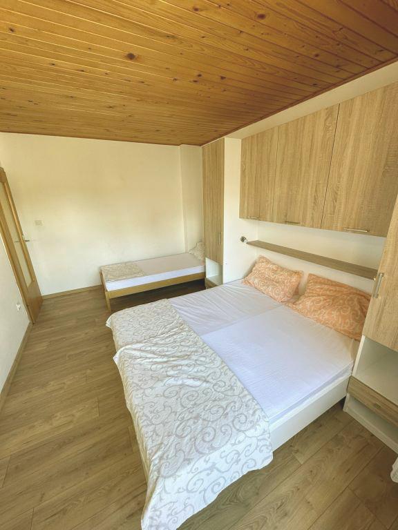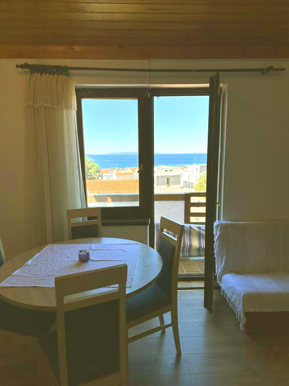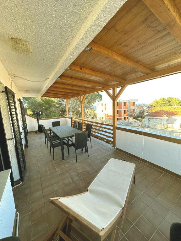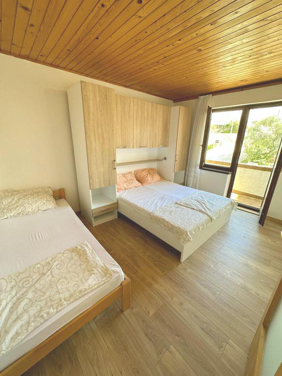 Úhledně zařízený byt se třemi ložnicemi a přistýlkou v obývacím pokoji. Ve všech třech ložnicích je manželská postel a šatní skříň na uložení oblečení. Velký obývací pokoj spojený s kuchyní. Byt má velkou terasu s výhledem na moře. S apartmánem je možné využít gril. Pro hosty je zajištěno parkovací místo ve dvoře a v bezprostřední blízkosti apartmánu.