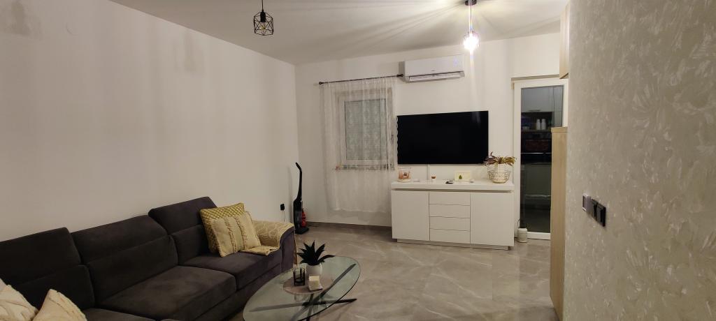 Nově zařízený apartmán v Novalji na ostrově Pag. Ostrov je spojen mostem. Nachází se v 1. patře bytového domu. K bytu náleží parkovací stání. Apartmán je vybaven klimatizací, WiFi zdarma, kávovarem Dolce Gusto, varnou konvicí, trezorem.