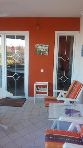 Apartmány se nacházejí ve dvoupatrovém komplexu apartmánů a apartmánů v klidném rodinném středisku Gajac, v blízkosti Novalje na ostrově Pag. Budova je asi 80-100 m od oblázkové pláže, a asi 200 m od všech ostatních zařízení pro příjemnou dovolenou. Apartmán č. 45 pro 4 osoby se nachází v přízemí se samostatným vchodem. Skládá se ze vstupní haly, 1. ložnice-lůžko pro dvě osoby 160x190cm, kuchyně vybavená sporákem, lednicí a mikrovlnnou troubou a přímého vstupu na terasu, 2. ložnice propojená s kuchyní a přímého vstupu na terasu-lůžko pro dvě osoby 140x190cm, koupelna s WC, 2. WC s pračkou, velká terasa 14 m2 s krásným výhledem na moře na západ. Apartmán č. 23 pro dvě osoby se nachází v přízemí. Skládá se z ložnice-velká postel pro dvě osoby 160x200cm, mini kuchyň vybavená sporákem, lednicí a mikrovlnnou troubou a krásná zarostlá květina pokrytá terasou ve stínu černé a vůně cypřišů.