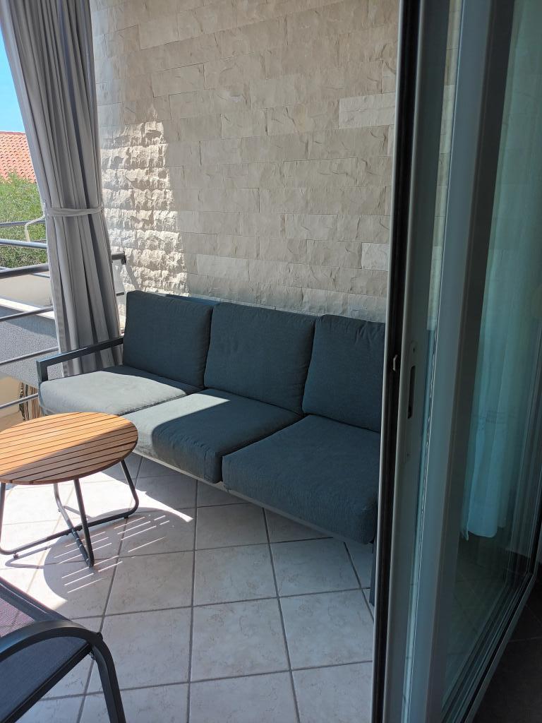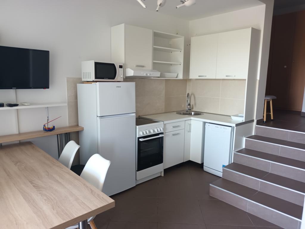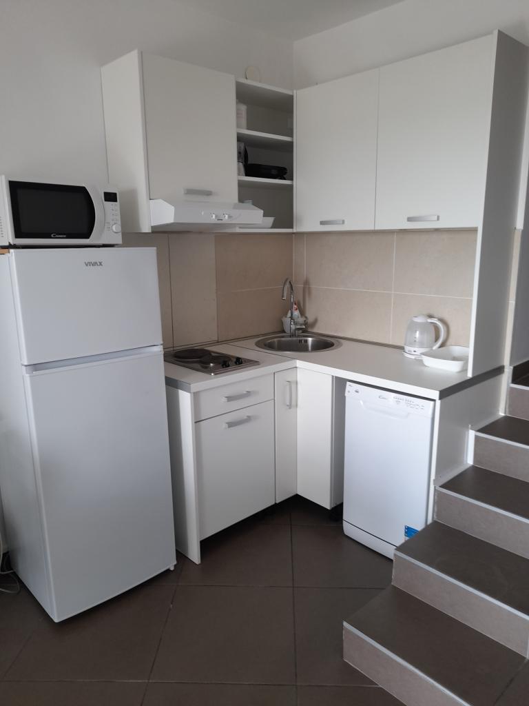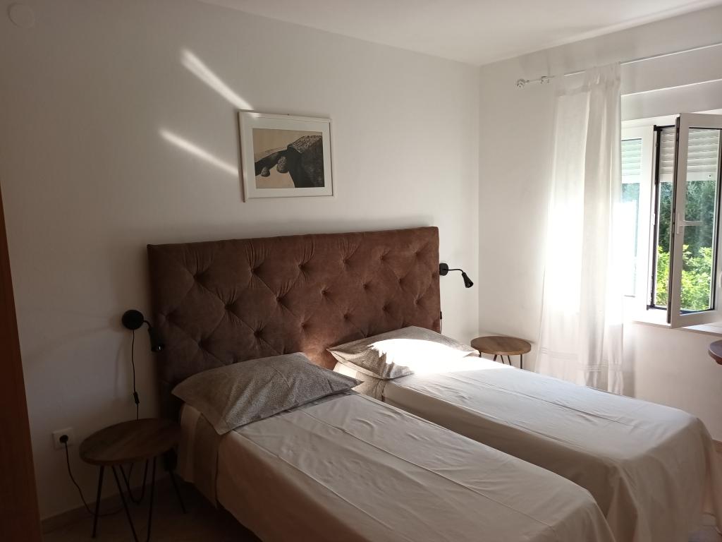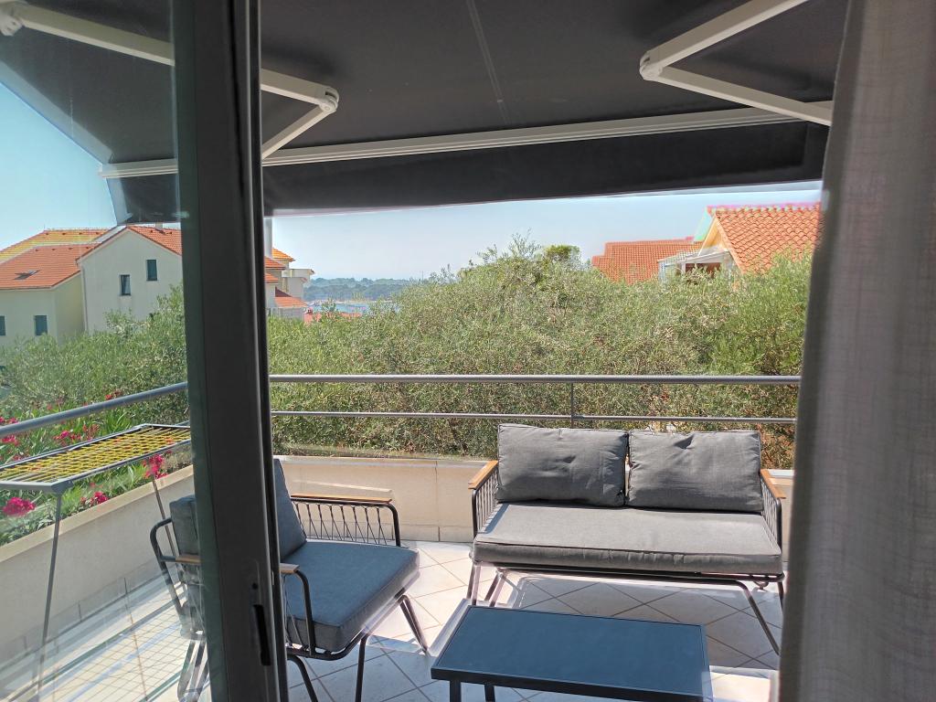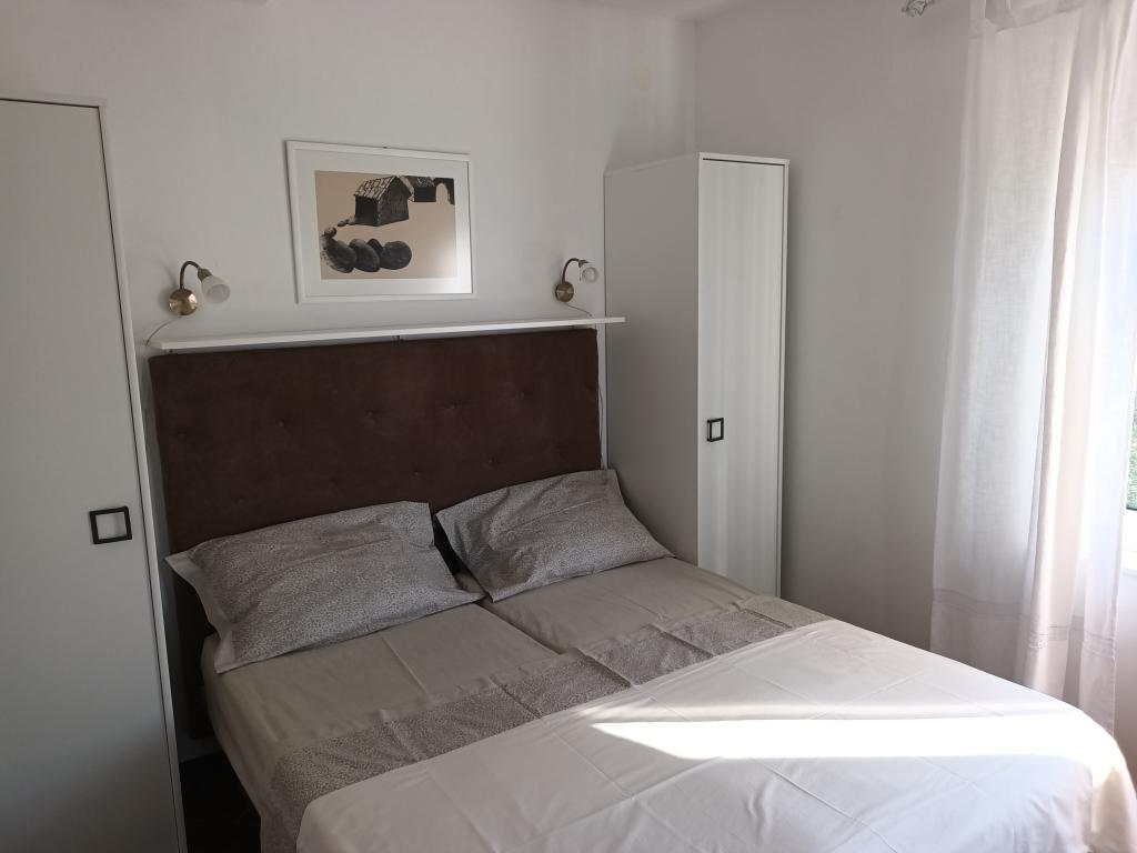 Moderní apartmány Allegro jsou jen 5-10 minut chůze od centra města a moře. Každý apartmán má jednu ložnici, prostorný obývací pokoj se dvěma lůžky, kuchyň, koupelnu, chodbu a velkou terasu s výhledem na moře. Velikost bytů je 54 a 50 m2. Parkování aut je zajištěno na zahradě domu. Majitel mluví chorvatsky, anglicky, italsky a mluví německy. Každý apartmán poskytuje ubytování pro čtyři osoby, je vybaven klimatizací a satelitní TV. Klimatizace a pobytová taxa jsou zahrnuty v ceně, není vyžadována žádná další záloha. Apartmány se nacházejí v prvním patře domu, jsou umístěny naproti sobě, takže jsou velmi vhodné pro ubytování větší skupiny, max. 8 osob. Apartmány se pronajímají obvykle na dobu 7 dní, dle obsazenosti je možný i kratší pobyt.