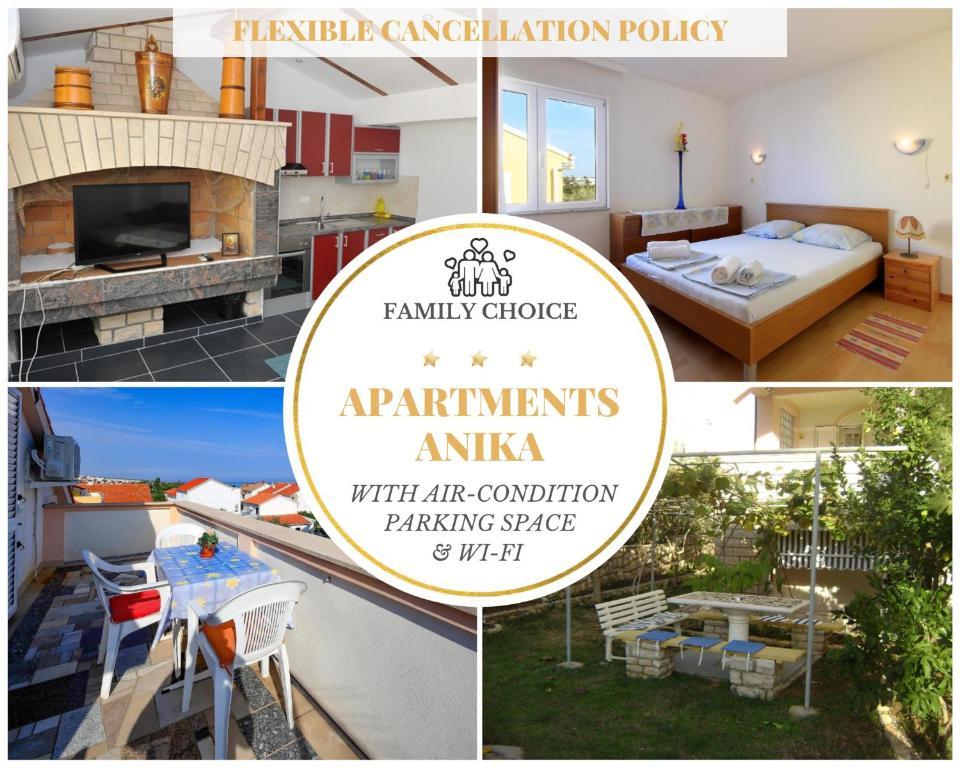 Apartmány Anika se nacházejí v Novalji, v domě obklopeném krásnou a velkou zahradou plnou zeleně. Všechny apartmány jsou pěkně vybaveny, mají TV, klimatizaci (kromě bytu a pokoje v přízemí) a velkou terasu. Všichni hosté apartmánu a pokoje mohou využívat zahradu s grilem (ale můžete grilovat také na své terase). Parkování je zajištěno ve dvoře. Pláž je vzdálená 10 minut chůze, okolí je klidné, zelené a krásné. Všichni hosté mohou využívat bezplatné Wi-Fi připojení na internet.