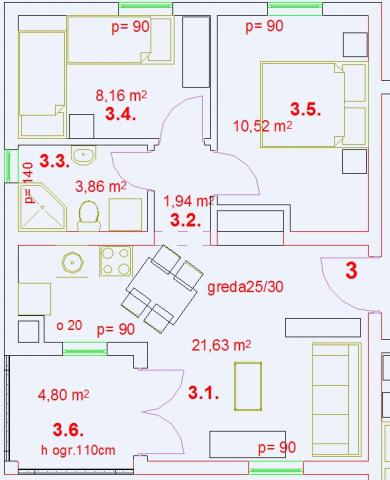 Apartmán pro tři osoby se dvěma přistýlkami (49 m2)