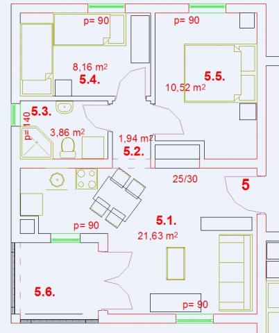 Apartmán pro čtyři osoby s jednou přistýlkou (49 m2)