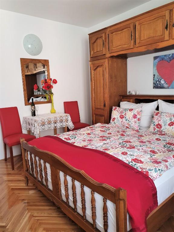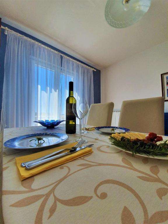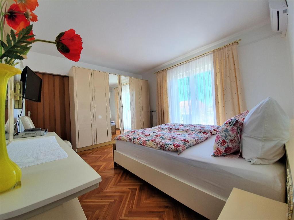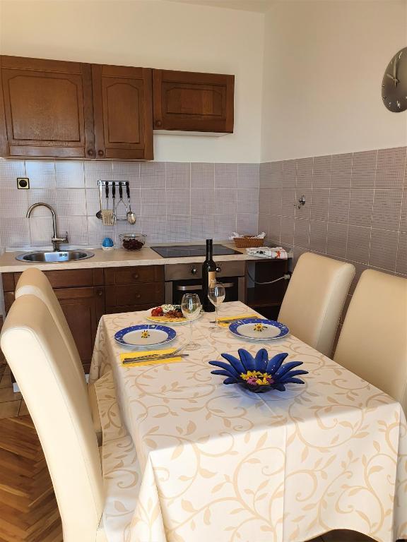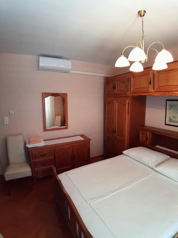 Náš krásný dům se nachází v klidné čtvrti Novalje, obklopený zelení, pouhých 150 m od centra města a 200 m od městské pláže. S hrdostí Vám nabízíme dva apartmány, pět dvoulůžkových pokojů a jeden třílůžkový pokoj. V přízemí domu je příjemná jídelna pro snídaně a večeře, stejně jako terasa s krásnou středomořskou zahradou, s hlídaným parkováním. Pro vaše pohodlí je dům vybaven ústředním topením a je v provozu po celý rok. Pro naše vzácné hosty připravujeme lahodné domácí speciality na objednávku a nabízíme možnost snídaní a večeří. Vážení hosté, byli bychom nesmírně rádi, kdybyste nám umožnili ubytovat vás v našem nádherném domě. S láskou Toni a Naďa Škuncovi