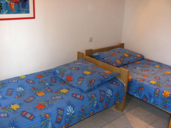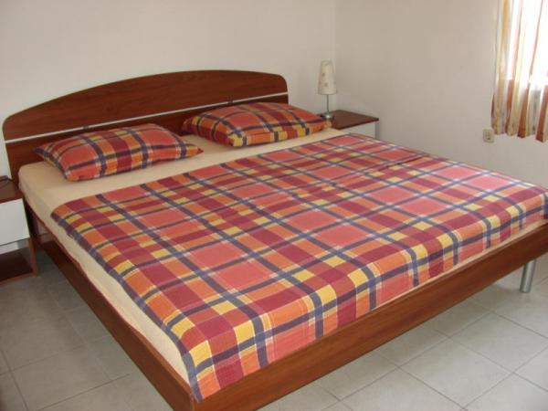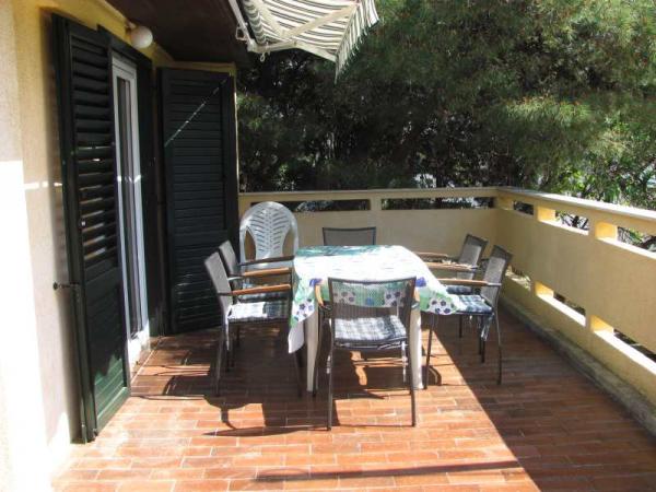 Plně vybavené a moderní byt 200 metrů od centra a 300 m od moře v klidné lokalitě se spoustou zeleně a parkovací místo. To se nachází v 1. patře s vlastním vchodem, 3 ložnice, velký obývací pokoj vedoucí na terasu s markýzou a grilem. Má také 2 koupelny jedna s vanou druhá se sprchovým koutem, klimatizací, TV se satelitním příjmem a volný přístup k internetu. Kuchyň je vybavena sporákem, lednicí, mikrovlnnou troubou a veškeré nádobí. Praní prádla a dětská postýlka na vyžádání.