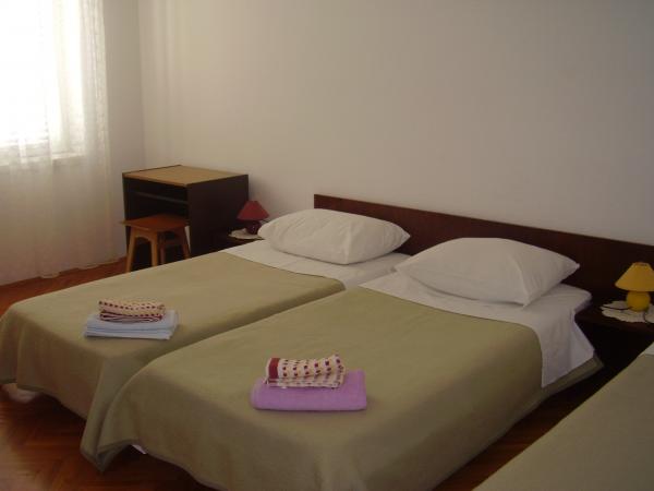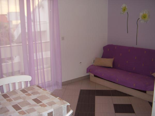 K pronájmu nabízíme dva apartmány pro 2 až 5 osob. Jsme nachází jen 2 minuty od moře. chůze od centra, 5 min. Byt A5 má dvě ložnice (jedna ložnice má manželskou postel a další 3 samostatná lůžka), koupelna a kuchyň s jídelnou. Apartmán A2 1 1 ložnice (2 lůžka), koupelna a kuchyň s jídelnou a navíc samostatným lůžkem (2 děti) Parkoviště. Wifi.