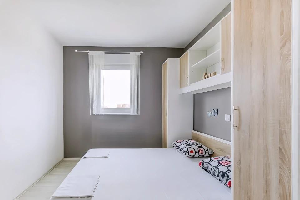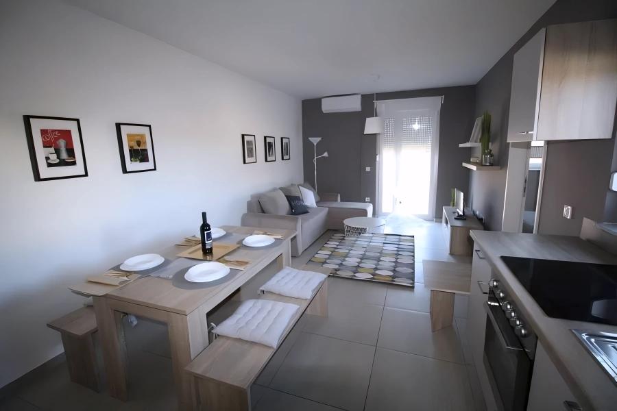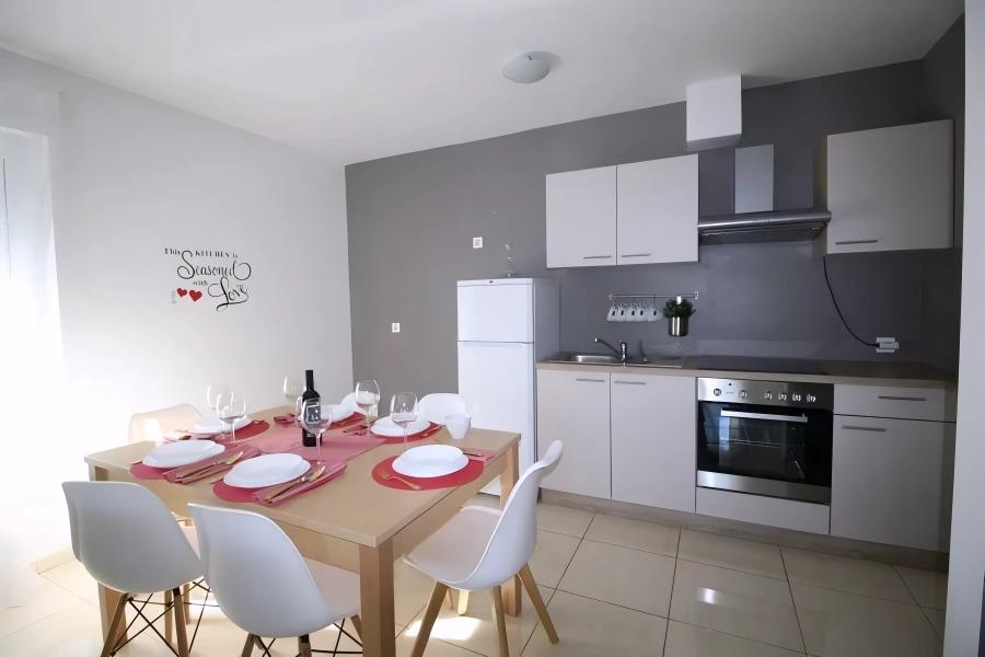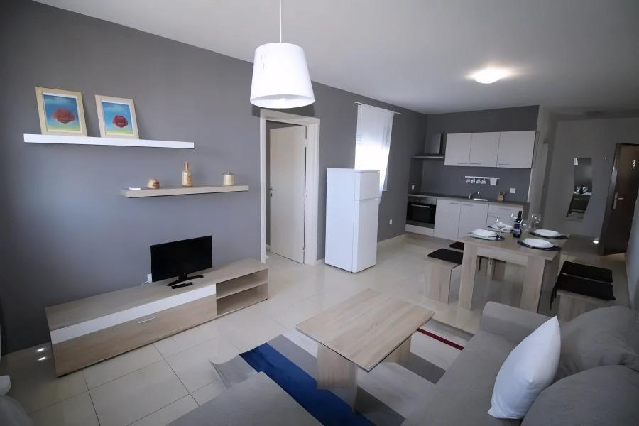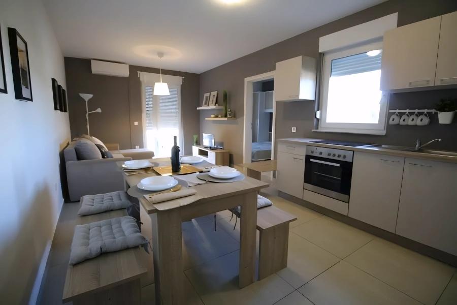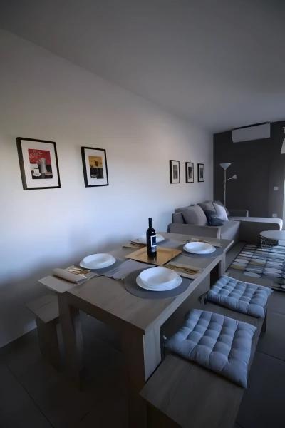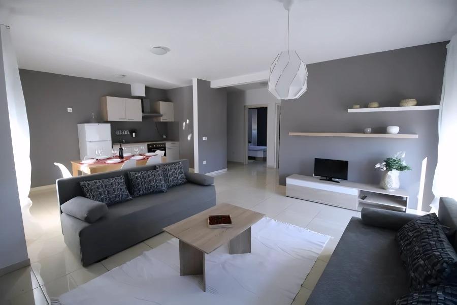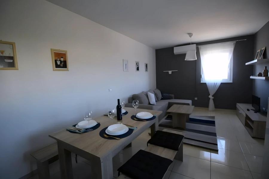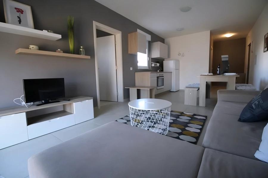 Apartmány Sun Mauro se nacházejí na klidném místě v Novalji. Jsou jen 1000 m od centra, takže si můžete užít ticho a být blízko veškerému vybavení, které toto město nabízí. Méně než 10 minut jízdy na festival - 2,4 km od místa konání. Na autobusovém nádraží po ulici od apartmánů jezdí kyvadlový autobus přímo na pláž Zrće. Apartmány se nacházejí v nové moderní budově. Je zde 8 apartmánů. (kapacita od 4 do 8 osob). Každý apartmán pro 4 osoby je klimatizovaný a má bezplatné Wi-Fi, SAT/TV, vybavenou kuchyň, obývací pokoj, ložnici a koupelnu. Apartmány pro 6-8 osob - plus jedna další osoba v případě potřeby - mají také všechny stejné podmínky, ale rozdíl je v tom, že mají dvě ložnice a některé apartmány mají dvě koupelny. Většina apartmánů má krásné terasy s výhledem na moře a město, vybavené sedacím nábytkem.