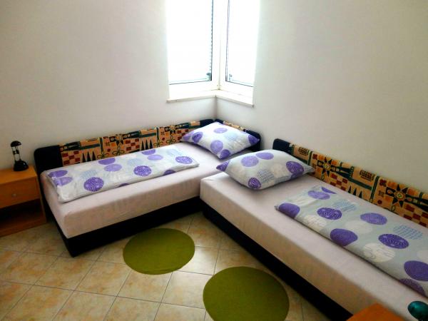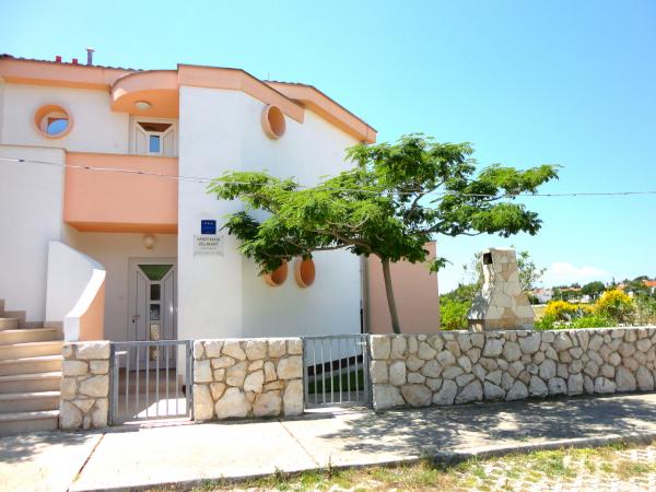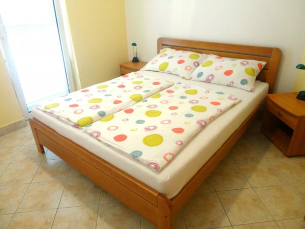 Apartmány Velmart v Kolanjski Gajac mají 2 apartmány o rozloze 60 m². Apartmán Velmart (ID: 2216) se nachází v přízemí a má dvě ložnice, obývací pokoj, kuchyň, jídelnu, koupelnu s toaletou a velkou terasu, ideální pro jídlo a dovolenou. Vedle terasy je nádvoří o rozloze 120 m² s přírodní zelení, velkým grilem na dřevě a uhlí a venkovním sprchovým koutem. Apartmán Velmart (ID: 2217) se nachází v prvním patře a má dvě ložnice, obývací pokoj, vybavenou kuchyň s barem, jídelnu, koupelnu s toaletou a dva pohodlné balkony, ze kterých si můžete vychutnat moře i pláž. V bytě je také menší dvorek o rozloze 20 m², ve kterém je velký gril na dřevě a uhlí. Apartmány se nacházejí 100 metrů od pláže, 2 km od známé pláže Zrče a 3 km od Novalje. Gajac má dlouhou promenádu podél pobřeží a pláže, kde se nacházejí plážové bary, což vede k tržnímu centru, obchodům, restauracím a jinému obsahu