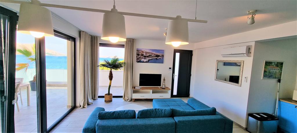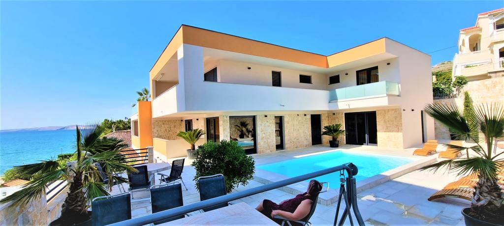 Moderní apartmánová vila v první řadě k moři, 400m od centra města, procházka podél moře.