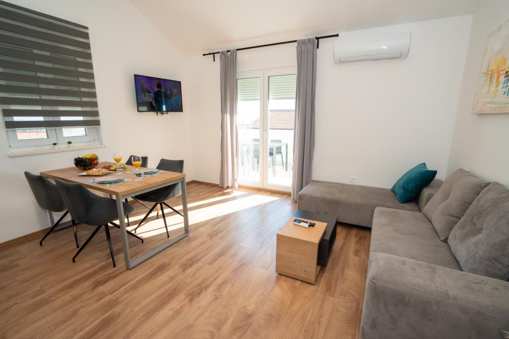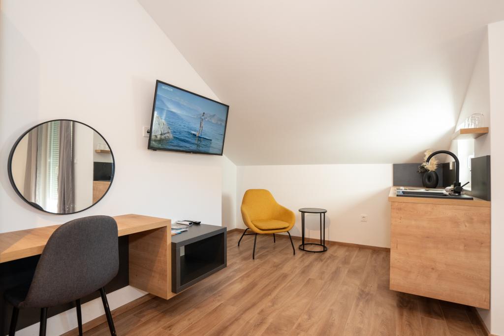 Užijte si pohodlí a eleganci našich moderně vybavených pokojů a luxusních apartmánů. Všechny ubytovací kapacity jsou kategorizovány jako 4 hvězdičky a vybaveny dle hotelových standardů pečlivě vybraným nábytkem a kvalitním vybavením. Ideální pro služební cesty, rodinné dovolené nebo letní relaxaci - váš dokonalý pobyt v Novalji začíná zde! I 4 hvězdičky - potvrzení kvality I Moderní vybavení a design I Apartmány s jednou ložnicí I Dvě přistýlky v prostorném obývacím pokoji I Bezplatné Wi-Fi I Soukromé parkování Rezervujte si nyní a zažijte maximální pohodlí! POZNÁMKA: Přistýlky v obývacím pokoji mohou využívat pouze děti do 12 let.