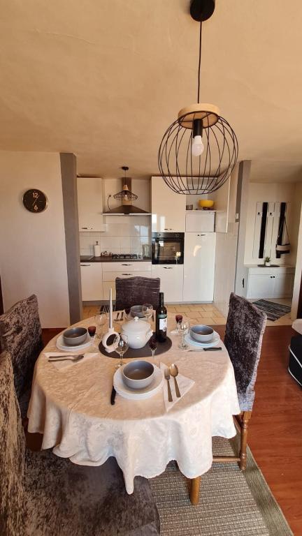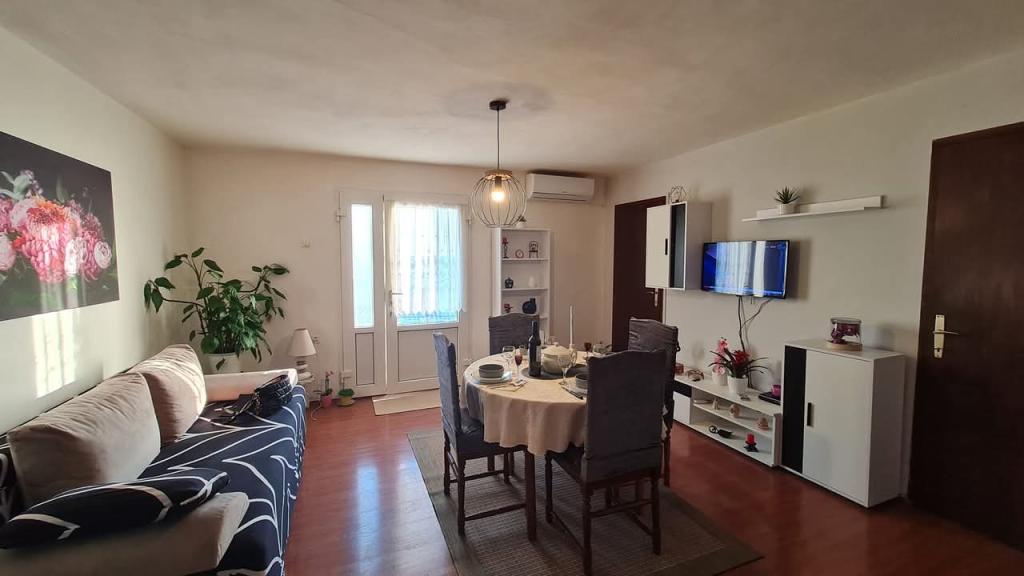 Vybavený apartmán se dvěma velkými ložnicemi, kuchyní, obývacím pokojem, koupelnou a krásnou velkou terasou s výhledem na moře a centrum města. Vybaveno všemi domácími spotřebiči (pračka, myčka, mikrovlnná trouba, toustovač, trouba, varná konvice, elektrický gril). Parkování, klimatizace a WiFi jsou v ceně. Byt se nachází 5 minut od centra města a 10 minut od hlavní pláže.
