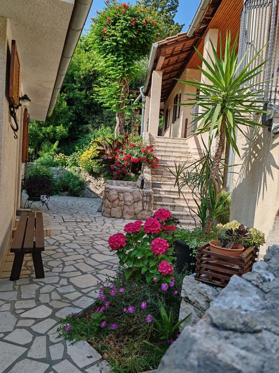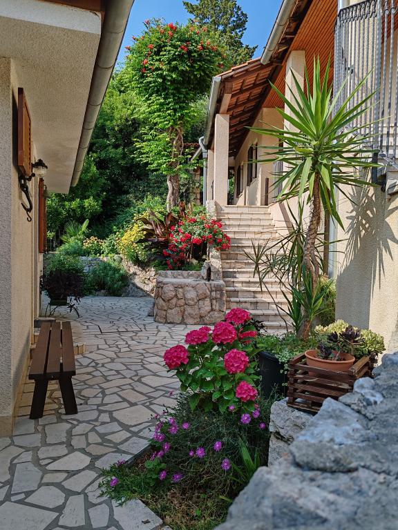 Nádherné místo v Přímořsko-gorskokotarské župě. Čisté moře, spousta zeleně a stínu. Ubytování pár minut od pláže. Klidné a čisté, zařízené s velkou duší a láskou. Nic okázalého, ale srdečné, se starožitnostmi v hale domu. Spousta květin a stínu v zahradě. Příjemné k odpočinku a odpočinku. S uvítacími nápoji a povzbuzováním začíná ta pravá dovolená. Vrátíme se opět ve větším počtu. Růže je vítána v Novém Sadu v Dunjinu květu!