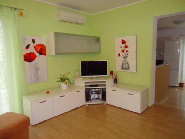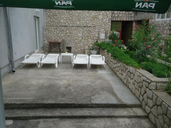 Byt je nový, moderní a plně vybavené. To se nachází v rodinném domě v klidné části města Novi Vinodolski částečným výhledem na moře, s přístupem k dvěma velkými terasami a trávníky, a parkoviště do vchodu do bytu. V areálu se nachází 7 minut chůze od centra města a 8 minut chůze od pláže. V bytě jsou 2 ložnice, koupelna s WC (sprchový kout, pračka, vysoušeč vlasů), obývací pokoj (TV / SAT, DVD, internet, radio), kuchyně (myčka, mikrovlnka, kávovar, elektrická varná konvice, toustovač, trouba, varná deska - 4 plynové, lednice) a jídelním. V jedné místnosti je jedno lůžko (160x200) pro 2 osoby, v ostatních místnostech 2 lůžky (90x200) pro dvě osoby, a v obývacím pokoji rozšiřuje jeden z pohovky do postele (160x190) pro 2 osoby, a je-li to nutné, a dětská postýlka. Terasy jsou vybaveny stolem a židlemi, lehátka (2 ks) a slunečníky. Na trávníku se nachází krb s grilem a slin a houpačky a houpačky pro děti.