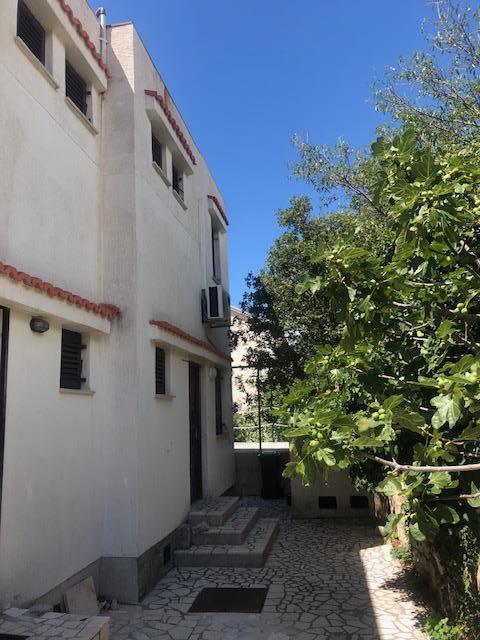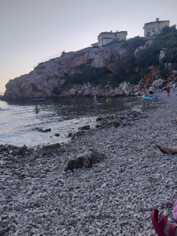 Dvoupatrový byt 70m2 + velká terasa 20m2 s výhledem na moře. Ve spodním patře je obývací pokoj se vstupem na terasu, kuchyně a WC. V horním patře je koupelna s WC a sprchovým koutem, tři ložnice (dvě s výhledem na moře a balkon). Samostatný vchod, soukromí. 3 minuty dolů po schodech na pláž.