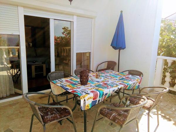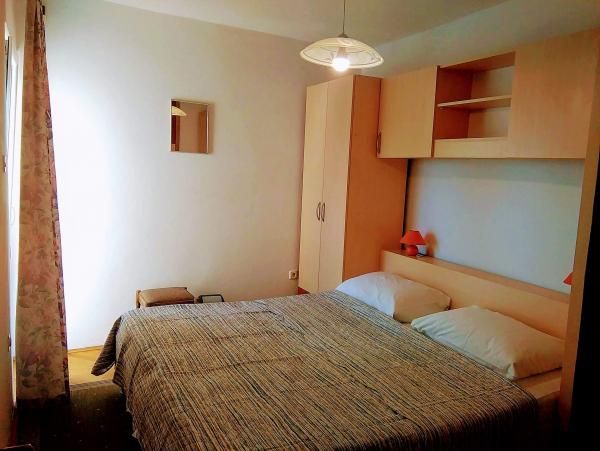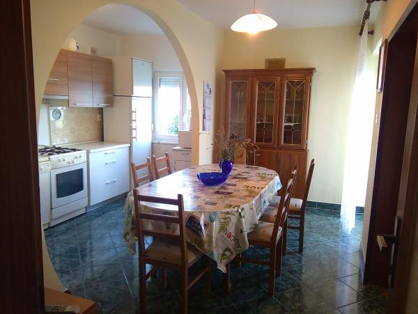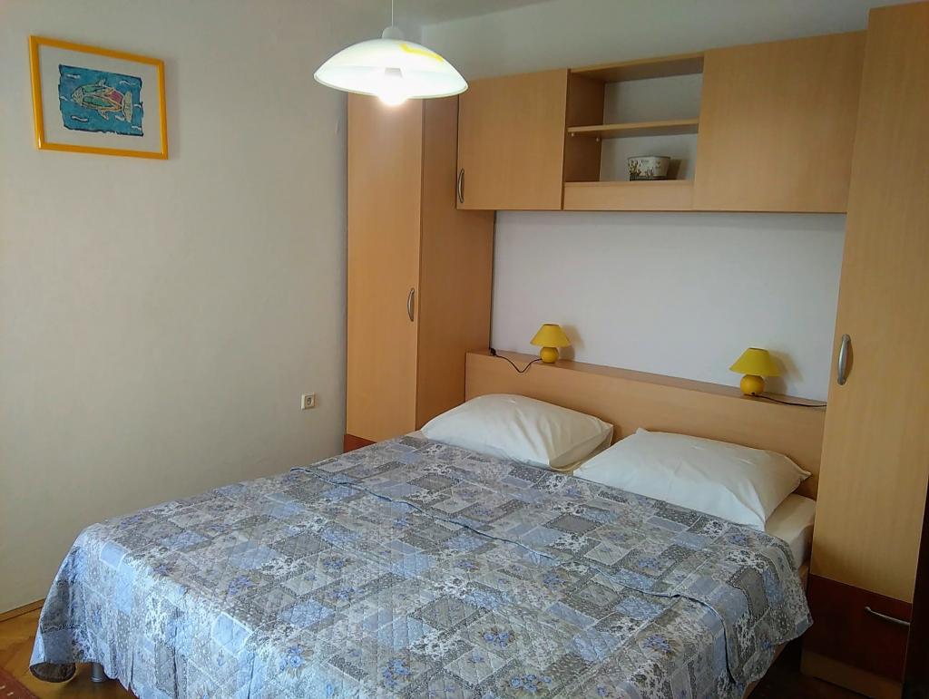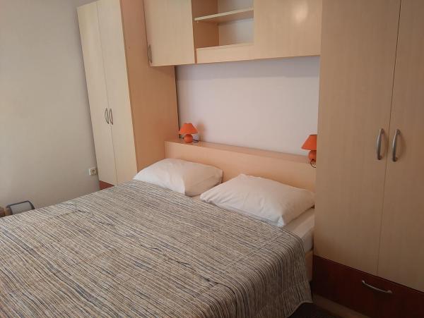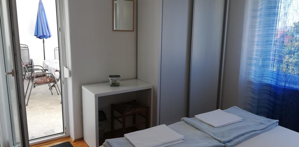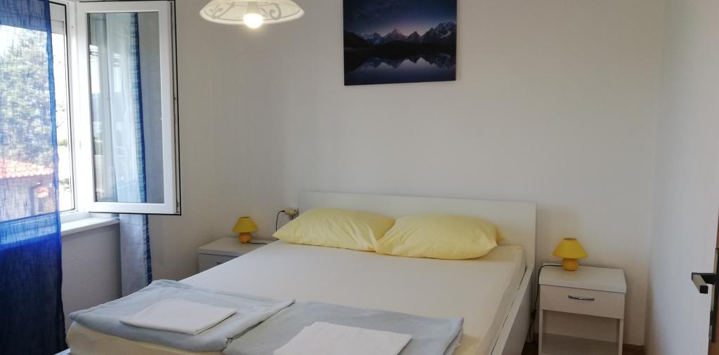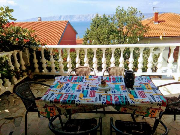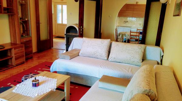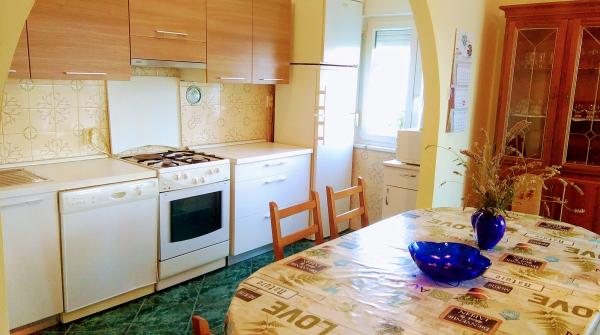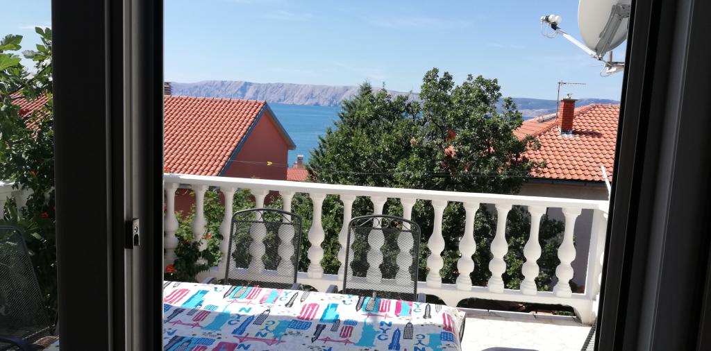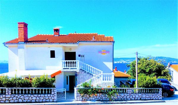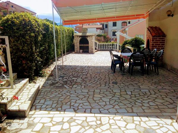 Plně vybavený byt o velikosti 100 m2 s grilem. Je umístěn v klidné části Novi Vinodolski, Z apartmánu je 400 m na pláž nebo 5 minut chůze, 700 m do centra města, 500 m do první restaurace, k nejbližšímu obchodu 50 m. Má tři ložnice. Dvě pokoje mají malý balkon a třetí ložnice má terasu s výhledem na moře. Má dvě koupelny, jednu velkou a jednu menší. Kuchyně je plně vybavena myčkou, rychlovarnou konvicí, mikrovlnnou troubou, mrazničkou, sporákem, filtračním kávovarem. V kuchyni je jídelna s velkým stolem a židlemi. Jídelna má malý balkon s výhledem do zahrady a na moře. Obývací pokoj má klimatizaci, výstup na terasu s výhledem na moře a přistýlku. Zařízení má WI-FI, konec objektu je parkoviště pro 2-3 auta. Na předním dvoře se nachází posezení a gril.