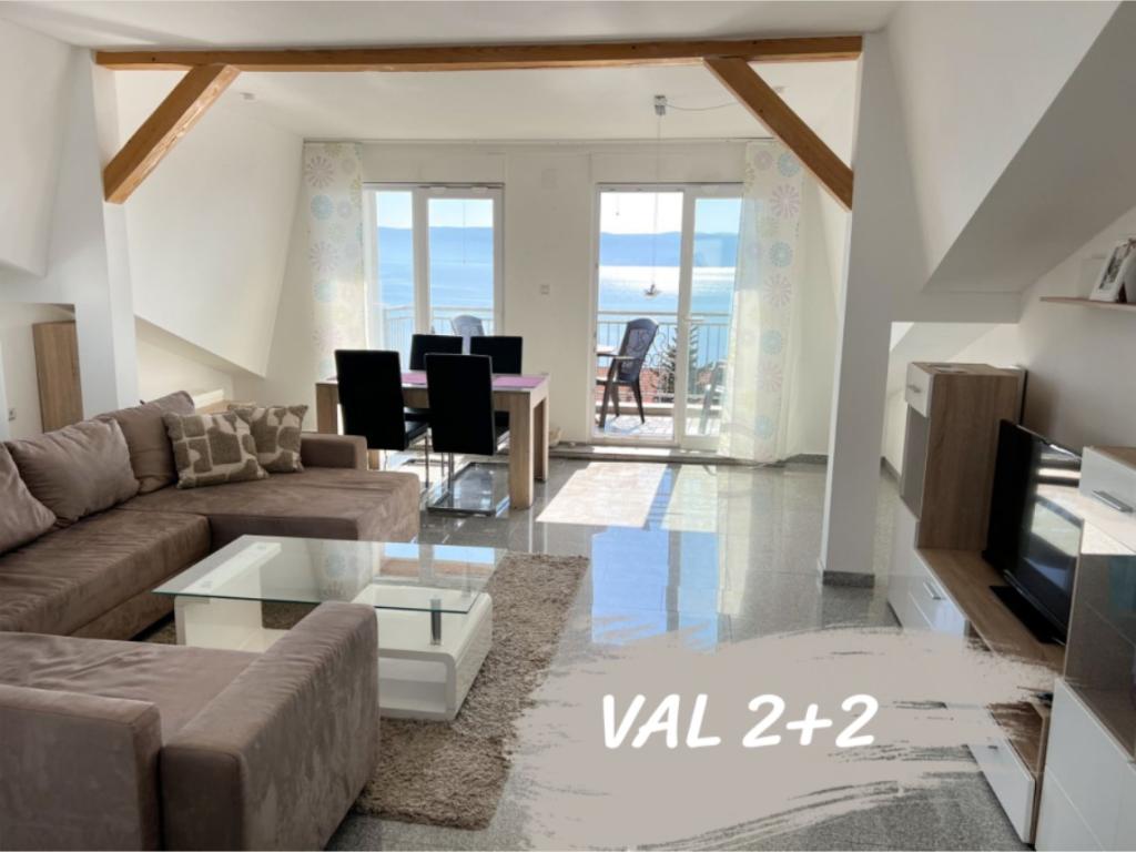 Apartmán VAL 2+2 se nachází v podkroví rodinného domu na adrese Zatrep 13. Má panoramatický výhled na moře a ostrov Krk. Pláž je vzdálená 300 m. Parkování je zajištěno před domem mimo dvůr. Domácí mazlíčci jsou vítáni a jejich pobyt je zdarma. Apartmán BEPA 2+0 se nachází v přízemí rodinného domu na adrese Istarska 10. Má částečný výhled na moře a ostrov Krk. Domácí mazlíčci jsou vítáni a jejich pobyt je zdarma. Apartmán ELENA 2+2 se nachází v přízemí rodinného domu na adrese Primorska 16. Má částečný výhled na moře. Pláž je vzdálená 200 m. Parkování je zajištěno ve dvoře. Apartmán AVA 2+2 se nachází v 1. patře bytového domu na adrese Mel 7. Má výhled na staré město. Pláž je vzdálená 200 m. Domácí mazlíčci jsou vítáni a jejich pobyt je zdarma. Parkování je veřejné a je zahrnuto v ceně.