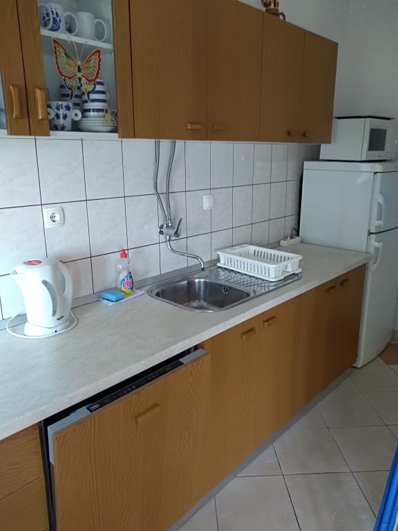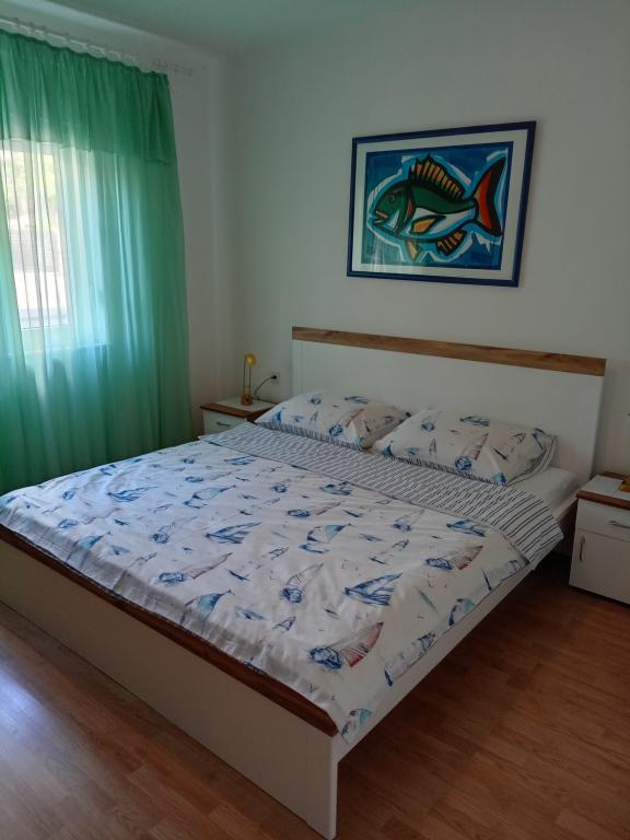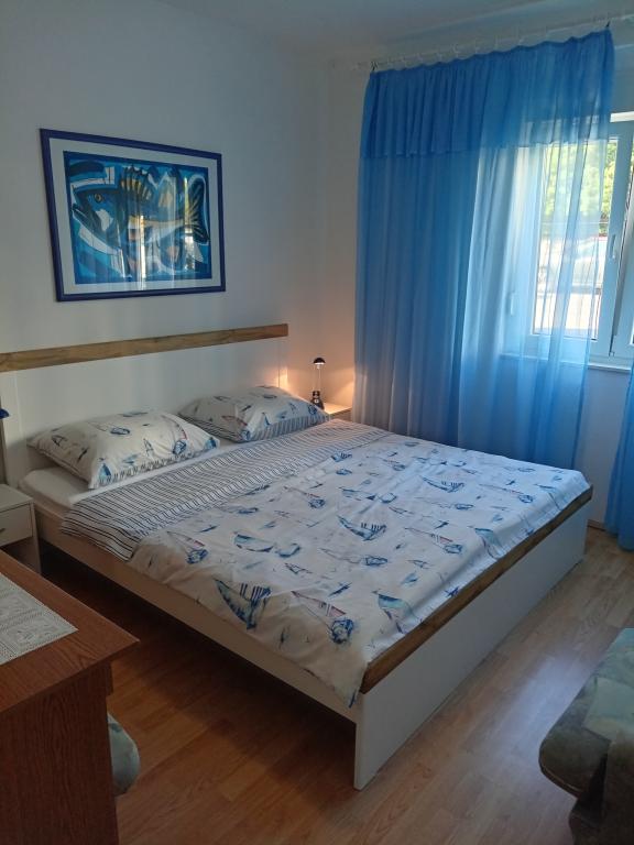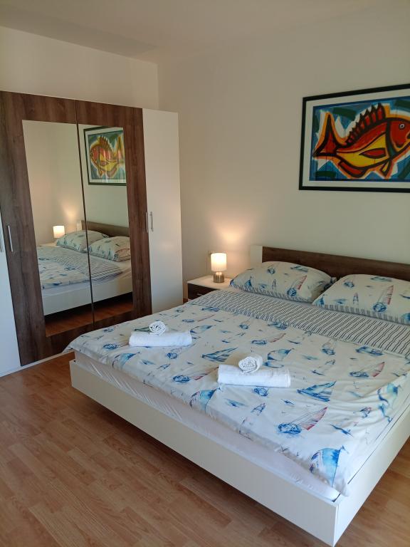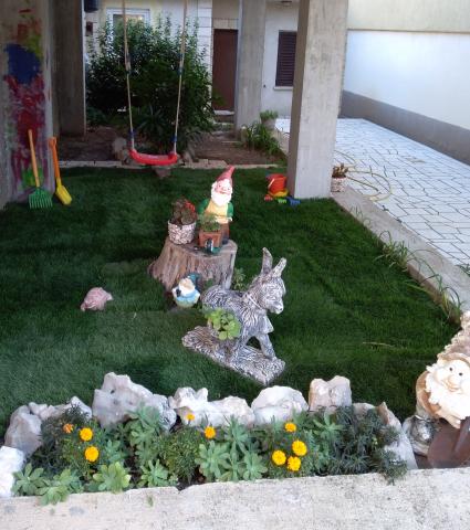 Byt se nachází v klidném prostředí v prvním patře rodinného domu. Je plně a moderně vybaven. Skládá se z kuchyně, jídelny, 3 ložnic a 2 koupelen. Je to jen 5 minut chůze do centra města a 10 minut chůze na městskou pláž. Hosté mají kromě 2 balkonů a terasy k dispozici také dvůr s grilem a parkoviště pro 2 vozidla v rámci objektu. Pobyt kratší než 3 dny je zpoplatněn o 30 % dráž.