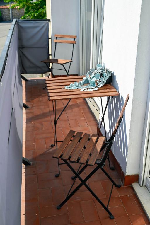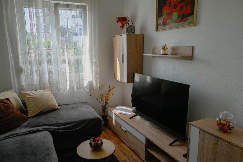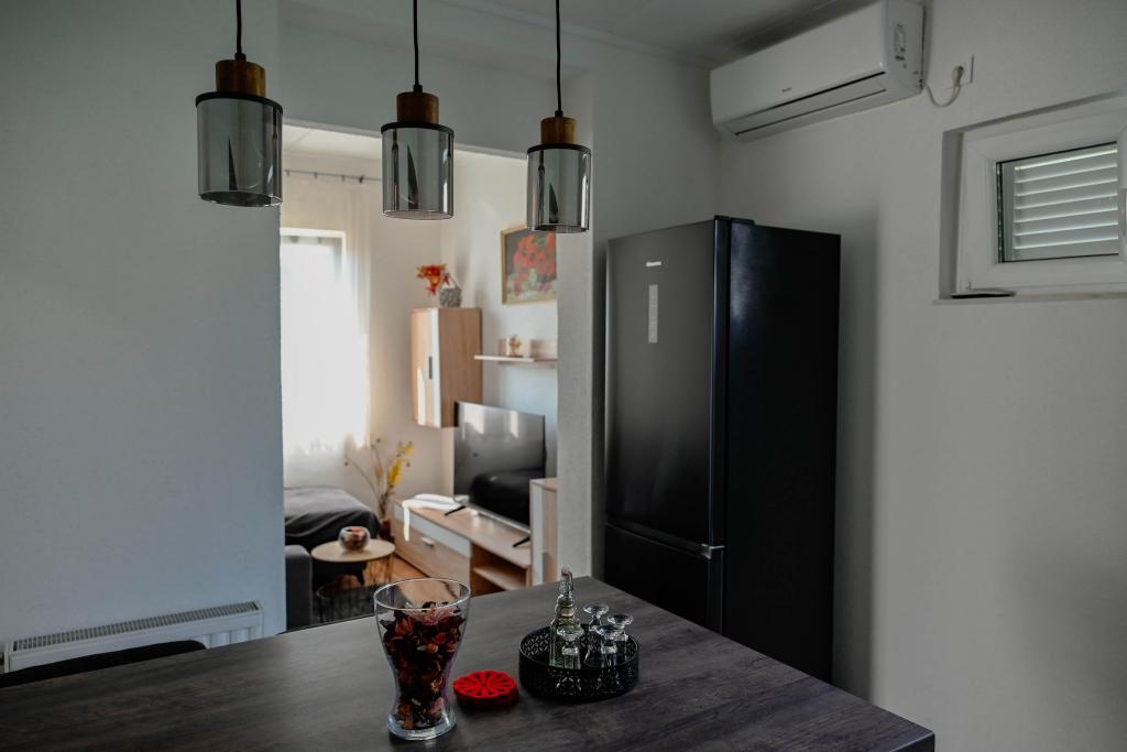 Apartmán se nachází v klidné části města Novi Vinodolski. Nemovitost se nachází přibližně 500 metrů od první pláže a 200 metrů od centra, obchodů a restaurací. Apartmán se skládá ze dvou ložnic, obývacího pokoje, kuchyně, koupelny s vanou, terasy a balkonu.