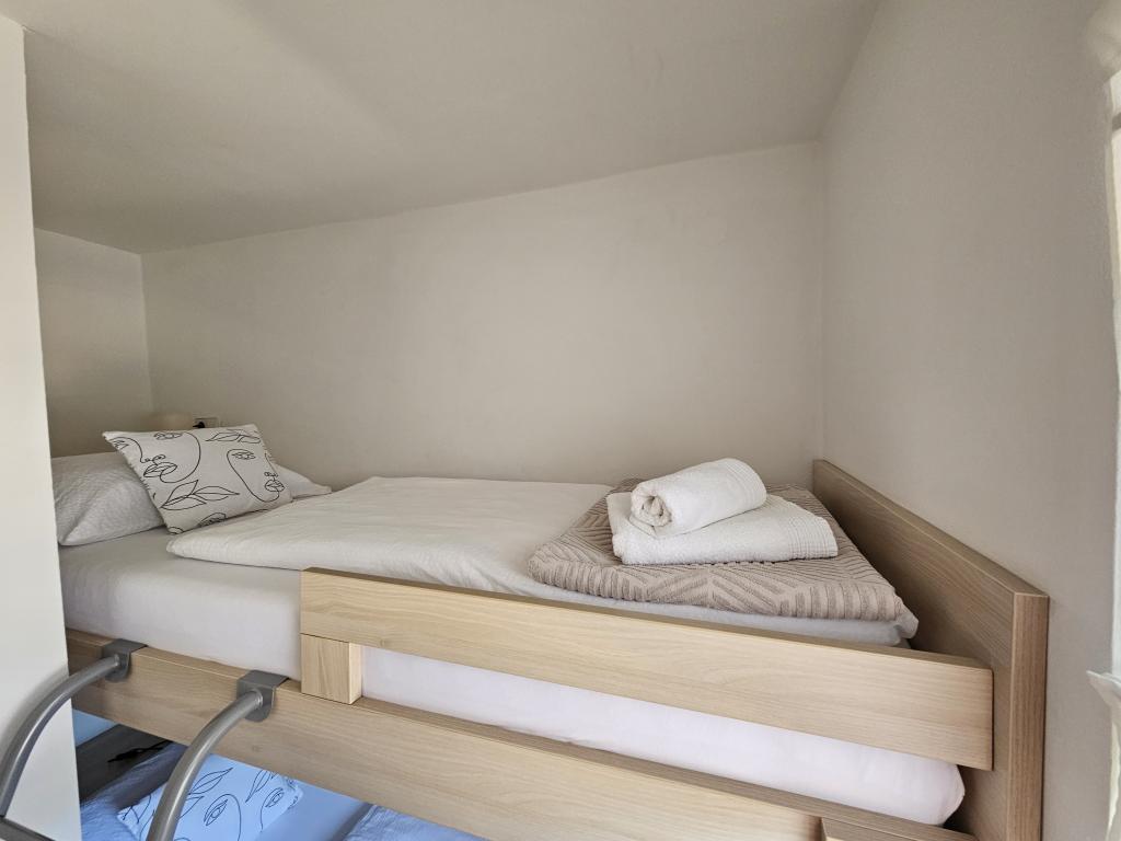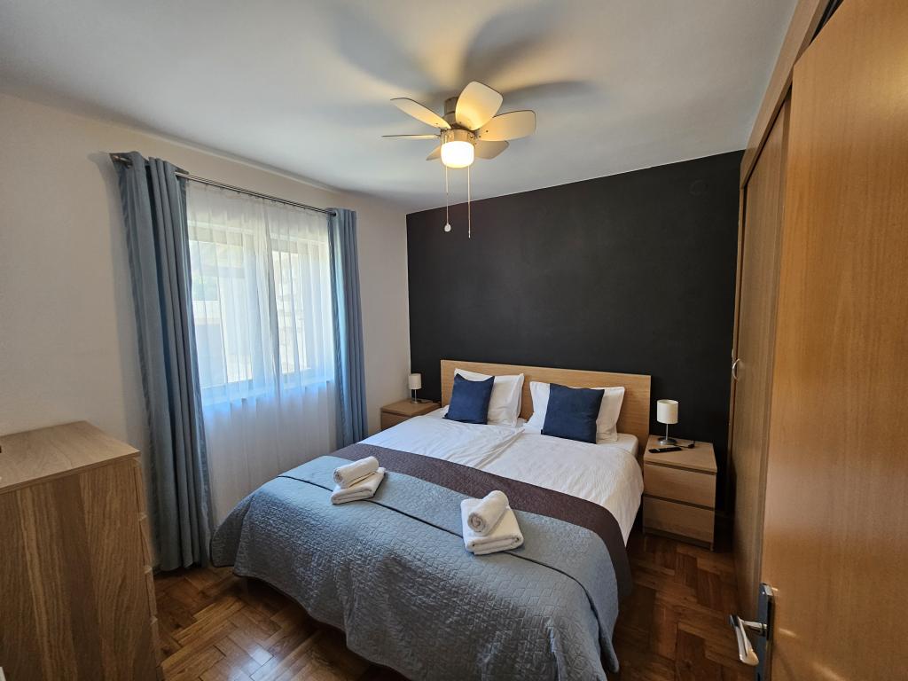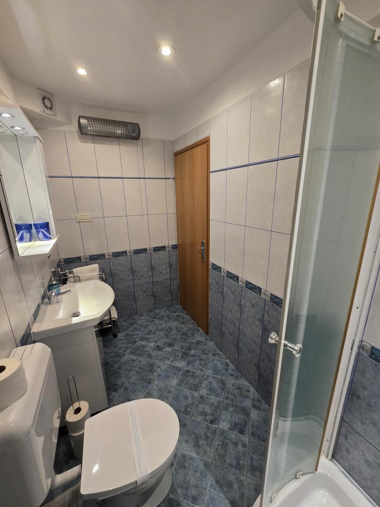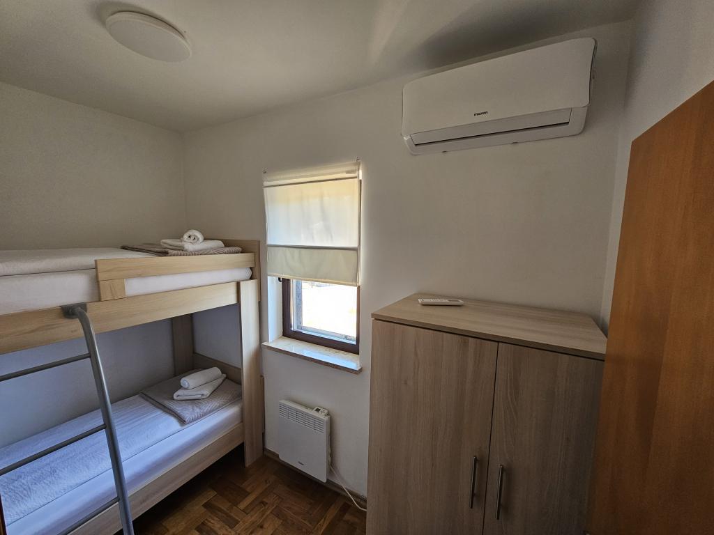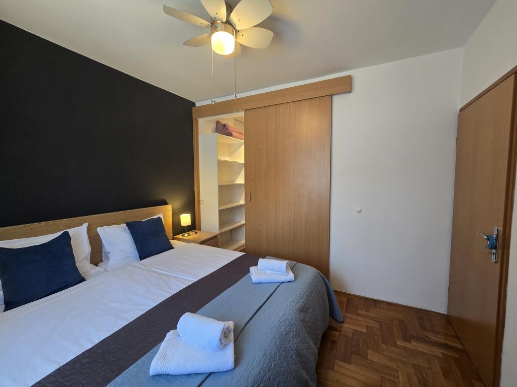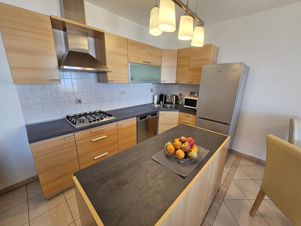 Plně vybavený byt sestávající ze dvou ložnic, koupelny, chodby, kuchyně, jídelny a obývacího pokoje. K dispozici je vysoká židle. Velikost terasy 25m2. Další LCD TV přijímač je umístěn v ložnici. Ložnice 1: velká manželská postel (200x180 cm). Ložnice 2: patrové postele (200x180cm). Byt se nachází v klidné ulici, v blízkosti veškerá občanská vybavenost. Nachází se v prvním patře rodinného domu. Kuchyň je plně vybavená (myčka, plynový sporák, trouba, lednice s mrazákem, kávovar + Nespresso, toustovač, mikrovlnná trouba, varná konvice, smoothie maker...). Byt je plně klimatizovaný (obývací pokoj + kuchyně a ložnice). Nemovitost je samostatně stojící a má vlastní bezplatné parkování ve dvoře.