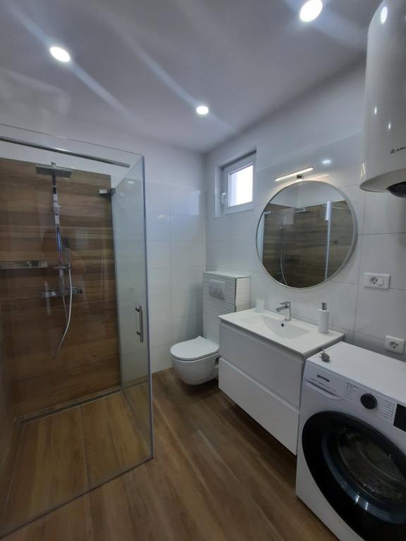 Okolí je příjemné a tiché, zejména pro odpolední odpočinek nebo klidný večer strávený na terase bytu, takže klidný spánek je zajištěn. S 8 min. pěšky do města najdete různé společenské vyžití od restaurací, cukráren, kaváren.. Pláže jsou jen 15 minut chůze od apartmánu a mnoho kaváren se nachází u moře. Restaurace: Bistro ĐIR Pizzeria (500m), Konoba Mate (650m), Tomas grill (700m), Bistro Tomas (750m), Pizerria Nava (750m) ... Všechny tyto restaurace mají hodnocení vyšší než 4. V centru máte četné kavárny, kde můžete pít od ranní kávy po noční koktejly atd.: Caffe bar M (550m), Arcadia (550m), Passage (650m), GAT (700m) ...