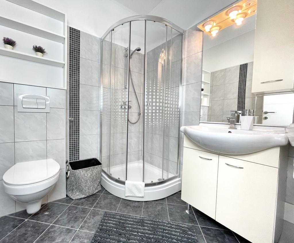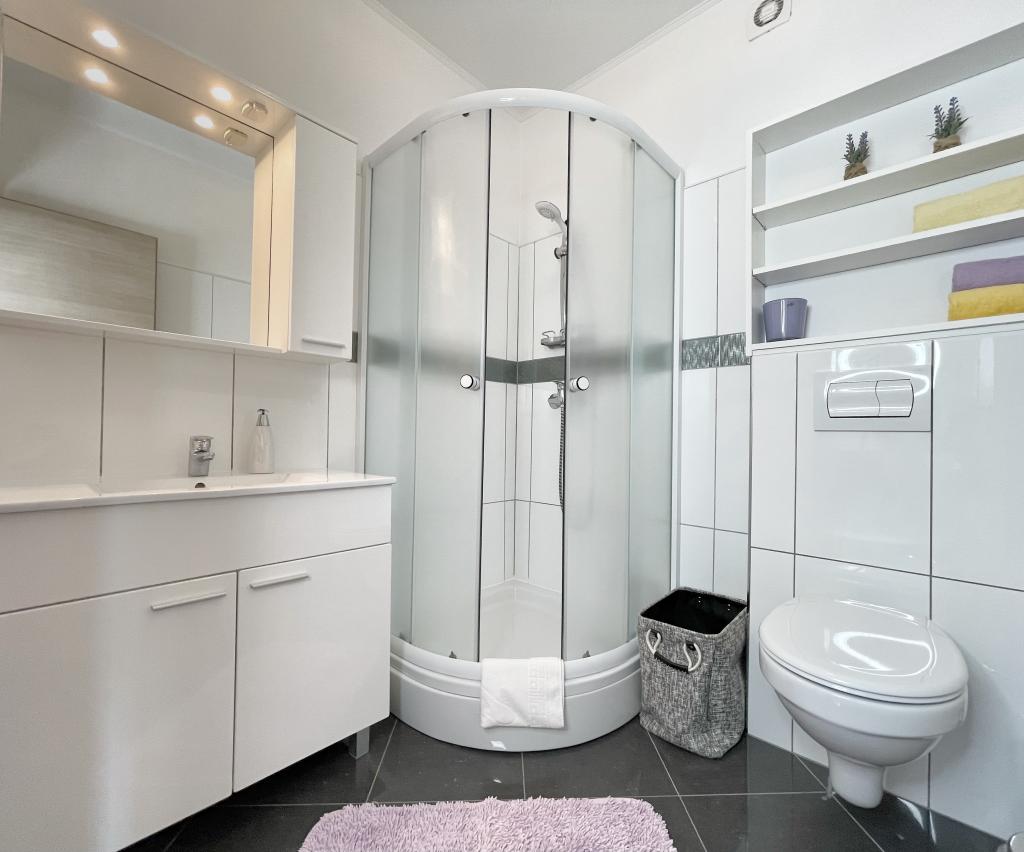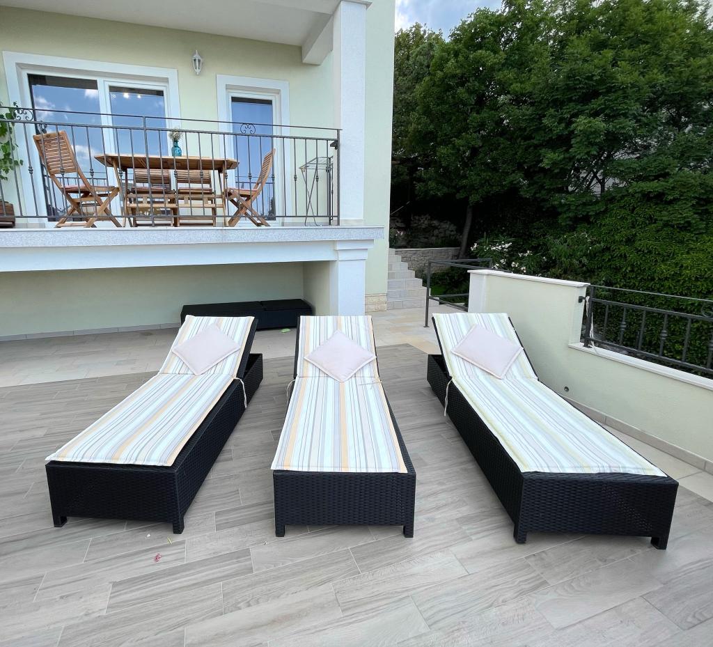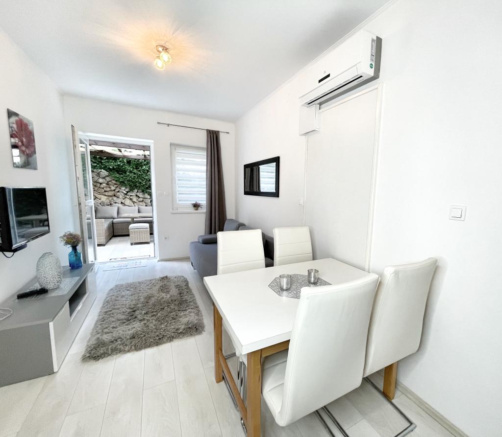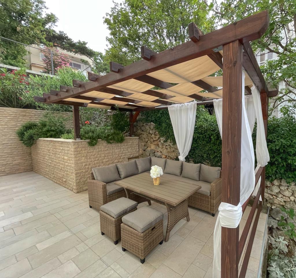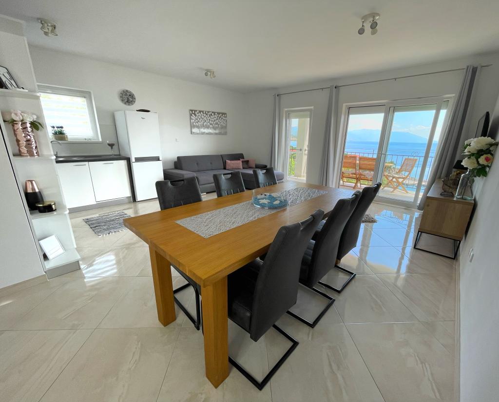 V klidné části města Novi Vinodolski - Povila, pouhých 60 m od pláže, se nacházejí plně vybavené, klimatizované rodinné apartmány s zabezpečeným parkovacím místem ve dvoře, které vám poskytnou nezapomenutelnou dovolenou. Samozřejmě - internet je rychlý a neomezený. Odpočiňte si na jedné ze dvou grilovacích teras nebo si užijte západ slunce na terase s lehátky. Pijete ranní kávu s výhledem na moře.