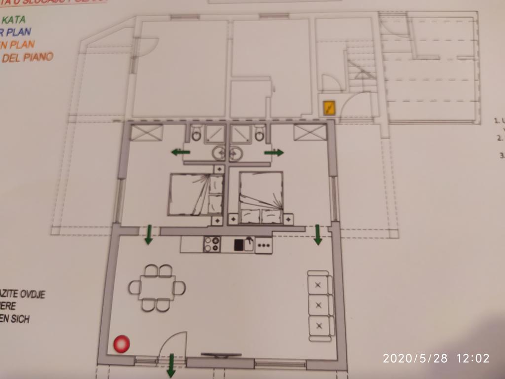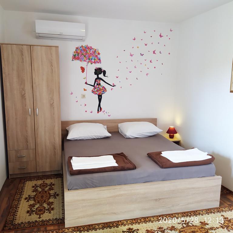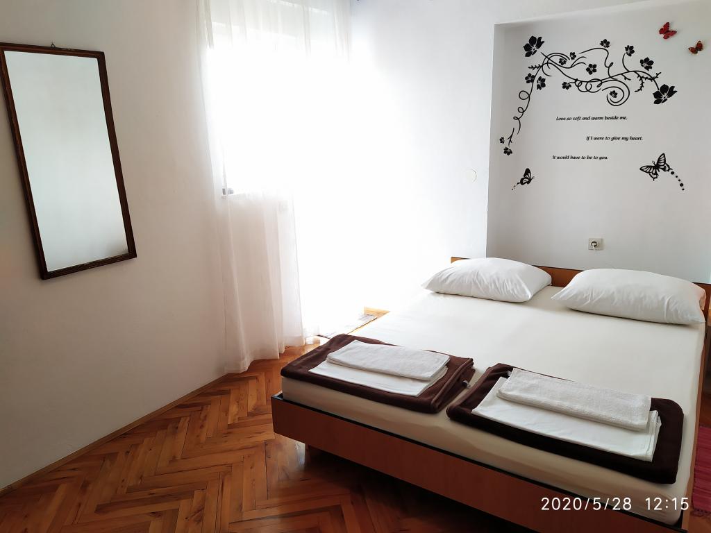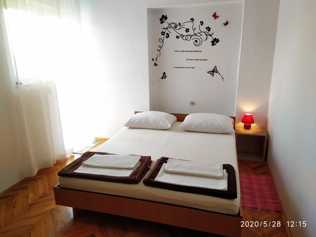 Zařízení se nachází v klidné části města, jen pár minut chůze od centra a deset minut chůze od pláže. V budově jsou dva dvoulůžkové pokoje a dva apartmány. Pokoje jsou umístěny v prvním patře. Každý pokoj má vlastní koupelnu uvnitř pokoje a balkon. Pokoje jsou vybaveny manželskou postelí a klimatizací. Hosté, kteří se rozhodnou rezervovat pokoj, mají možnost využít letní kuchyňku, která je vybavena plynovým sporákem, ledničkami, varnou konvicí a nezbytným černobílým nádobím. Wi-fi, klimatizace, parkování a používání letní kuchyně jsou zahrnuty v ceně. Za použití pračky se účtuje 40,00 HRK za praní. Apartmány byly postaveny a vyzdobeny v roce 2020. Každý apartmán má parkoviště, terasu, klimatizaci, televizi s Evo TV, wi-fi, vysoušeč vlasů, žehličku, žehlicí prkno, kuchyň vybavenou elektrickým sporákem, digestoří, mikrovlnnou troubou, rychlovarnou konvicí, lednicí, myčkou, pračkou a černou a bílé nádobí.
