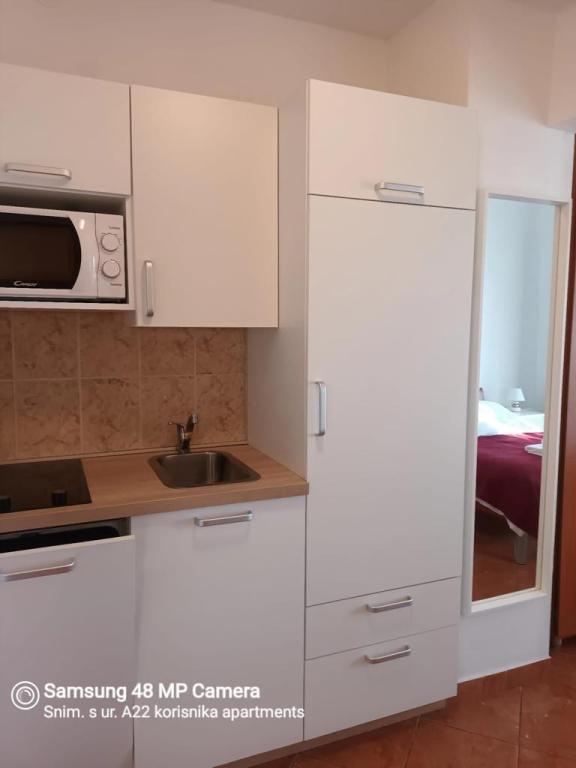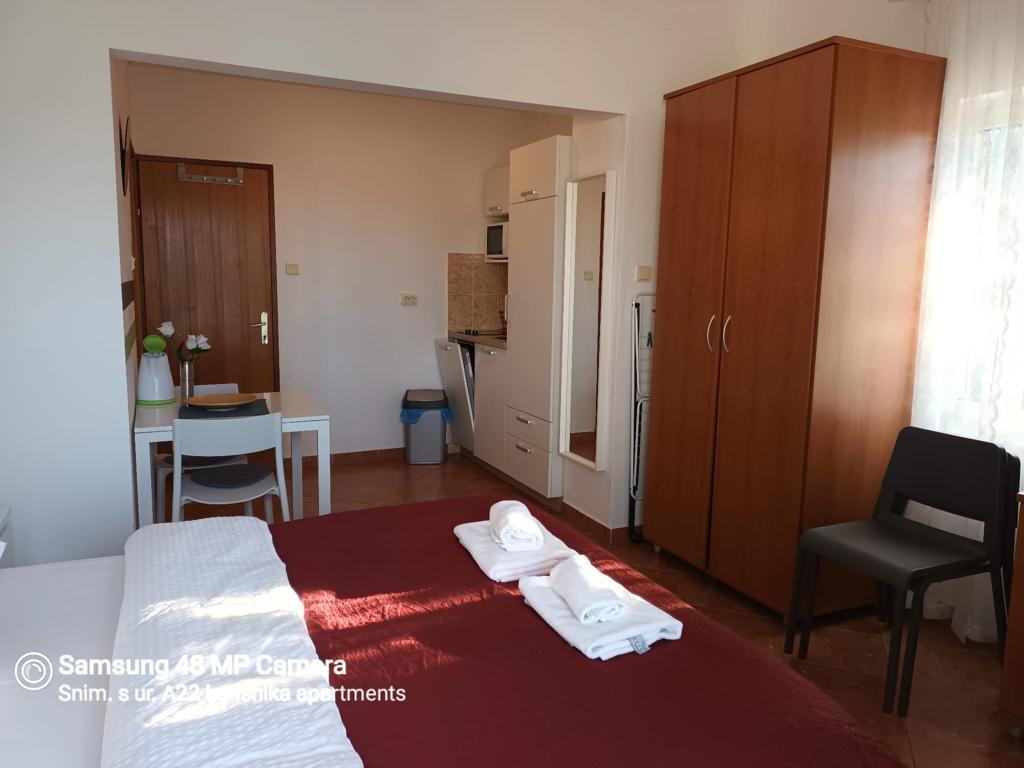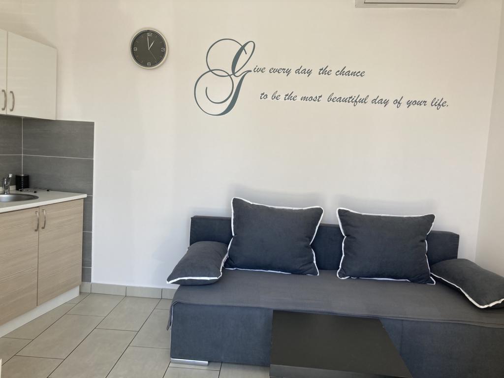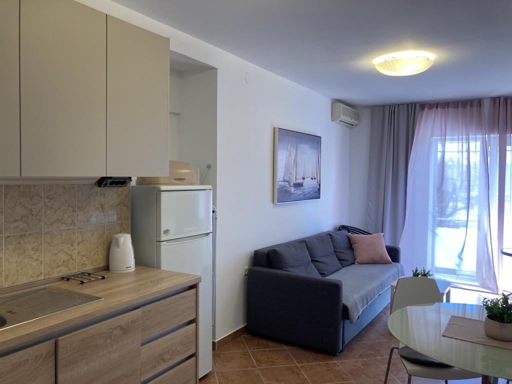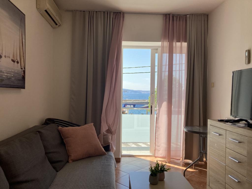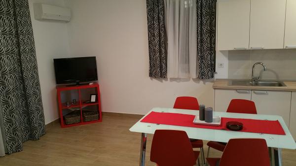 Nově zrekonstruované a moderně vybavené apartmány umístěné podél silnice v blízkosti moře a sto metrů od centra. Apartmány mají balkony s výhledem na moře. Apartmány mají Wi-Fi, TV s plochou obrazovkou, satelitní TV, invertorovou klimatizaci. Vzdálenost od pláže je 100 m a liší se od písečné, skalnaté, oblázkové a betonové.