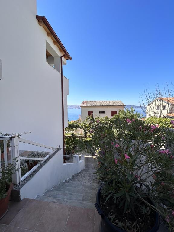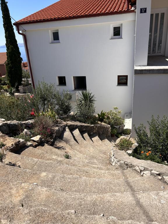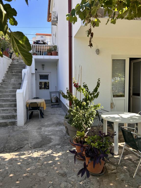 Rodinný dům s výhledem na moře a zelené zahradě na klidném místě. Majitel domu bydlí. Apartmány jsou plně vybavené. Umístěny ve třetí řadě od moře, 5 minut chůze trochu z kopce, 10 minut chůze do centra. Výborná auto přístup, parkování ve dvoře. Každý apartmán má samostatný vchod, balkon nebo terasu a zahradní nábytek. Tyto ceny nejsou stanoveny. Jsou závislé na období sezóny, počtu osob v bytě a délce pobytu v bytě. Skryté náklady navíc není.