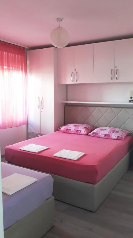 Rodinný dům se dvěma plně a moderně vybavenými apartmány (přízemí a první patro) se nachází v klidné části města. Je to jen pár minut chůze od centra města a 5 minut chůze od městské pláže. Apartmán 1 má vlastní terasu, dvě ložnice a obývací pokoj s rozkládacím gaučem, na kterém mohou v případě potřeby přespat dvě osoby, zatímco Apartmán 2 má 3 ložnice a 4 balkony. Každý apartmán má dvě koupelny a kuchyň s jídelnou. Uživatelům obou apartmánů je k dispozici gril s jídelním koutem.