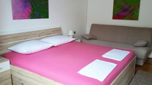 Ubytování je prostorné, čisté, uklizené, krásná terasa s přírodním chladem, spousta zeleně, ovocných stromů a pohodlí. Lehátka na terase, houpačka, velká terasa na grilování ... Idylická! Ještě větší chválu paní Vilijanovi a panu Andjelkovi, skvělí hostitelé, kteří nás přivedli a řídili nás při dvou příležitostech, se o všechno starali, byli vám neustále k dispozici. Úžasní lidé, nádherná atmosféra, kvůli takovým lidem a prostoru věřím v apartmány, 1000krát více než v hotelových pokojích. Děkujeme také všem za jejich doporučení, že pokud zamíří do Novi, nenajdou lepší ubytování. Spousta pozdravů.