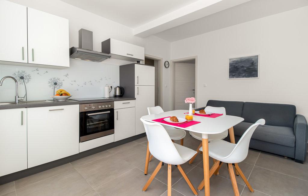 Náš rodinný dům se nachází v klidné části města Novi Vinodolski v blízkosti města. Vzdálenost od pláže je 400 m, obchody a restaurace jsou také nedaleko. Nabízíme příjemné ubytování v apartmánech pro 2-4 osob, které jsou považovány za třetí apartmány jsou nové a plně vybavené. Každý apartmán má klimatizaci, TV, Wi-Fi, plně vybavená kuchyň, jídelna, ložnice, koupelna s WC a obývacím pokojem a terasou s výhledem na moře. Apartmány mají samostatné vchody, z nichž každý má parkovací místo. Těšíme se na setkání s Vámi.
