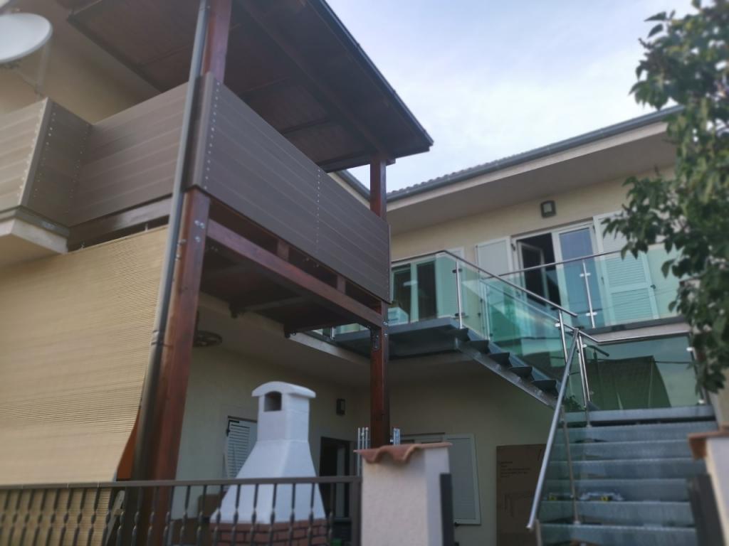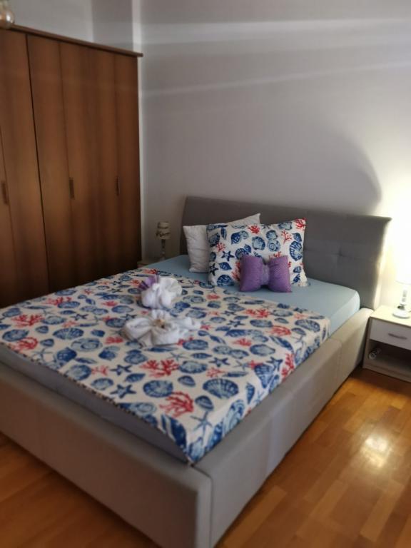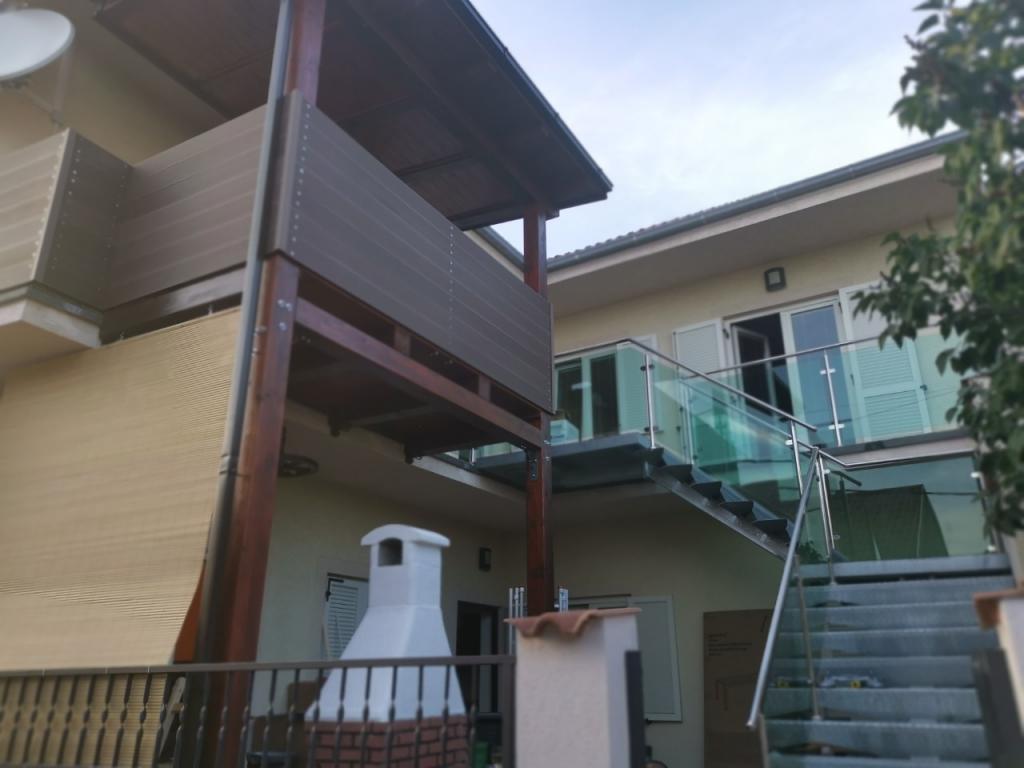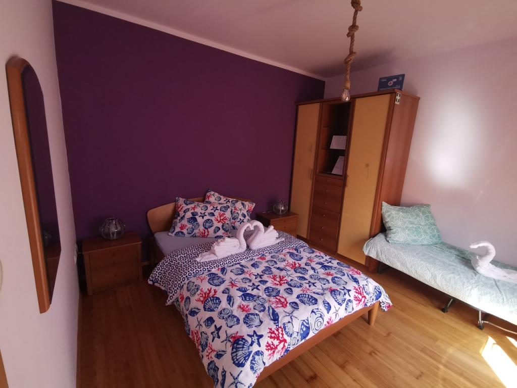 Plně a moderně zařízený byt se 6 lůžky k pronájmu s možností dalších 2 přistýlek s krásným výhledem na moře, v blízkosti veškerá občanská vybavenost, restaurace, moře a pláže. Ideální pro klidnou rodinnou dovolenou. Můžete si vybrat mezi písečnými a oblázkovými plážemi, které jsou od apartmánu vzdálené 750 metrů. Pláže jsou tvořeny nesčetným množstvím vybavení, které je přizpůsobeno dětem všech věkových skupin. Byt se skládá z ložnic, koupelny, kuchyně a balkonu a je zde krásná terasa s výhledem na moře a gril. Každý apartmán má také klimatizaci a internet zdarma. Máme také oplocené parkoviště (150 m od bytu), které je ve stínu, takže vaše plechovka může být v bezpečí během vaší dovolené. Centrum je jen kousek pěšky, takže večery mohou být naplněny různými aktivitami.