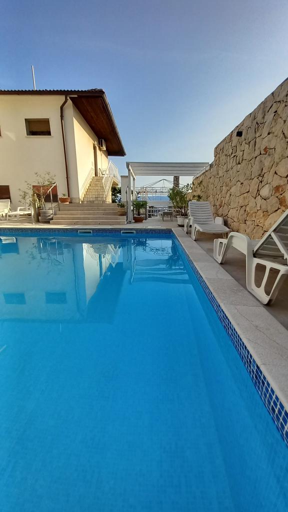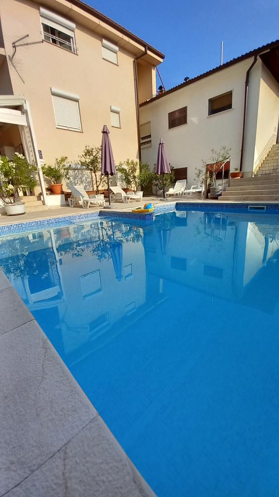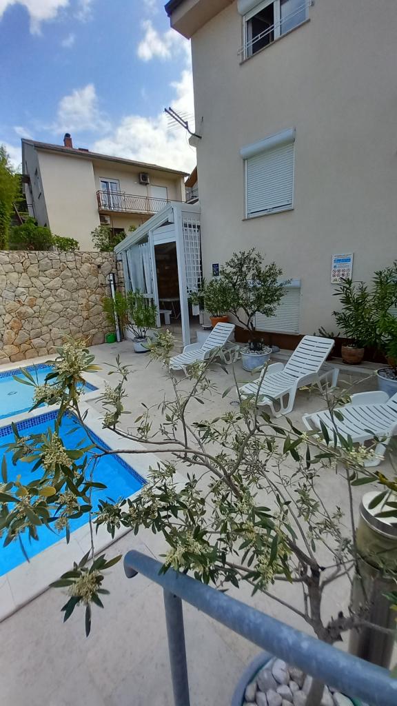 Rodinné apartmány -ŠVOB - s bazénem; pro rodinnou dovolenou s dětmi, vnoučaty (vhodné pro rodiny s dětmi). Nepřijímáme skupiny mladých lidí. Koupání v moři a bazénu, relaxace s masáží, sauna. Apartmány se nacházejí na skvělém místě v Novi Vinodolski, přibližně 350 m od pláže (vhodné pro děti i dospělé), hotelu Lišanj, parku, promenády u moře a centra města. Apartmány jsou plně vybavené. Každý apartmán má vlastní vchod, balkon nebo terasu s výhledem na moře, zahradu, společný venkovní bazén. *Máme otevřeno od 28.04. - 15.10. (sezónně). - V domě - s bazénem v nabídce: 5 rodinných apartmánů (2 větší a 3 menší), terasy/gril, 2 venkovní sprchy, WC. Parkování před naším domem (1 parkovací místo na apartmán), WI-FI. *Oslavy pro mladé lidi nejsou povoleny! *CENA First min./Last min. platí pro 2 dospělé + 2 děti