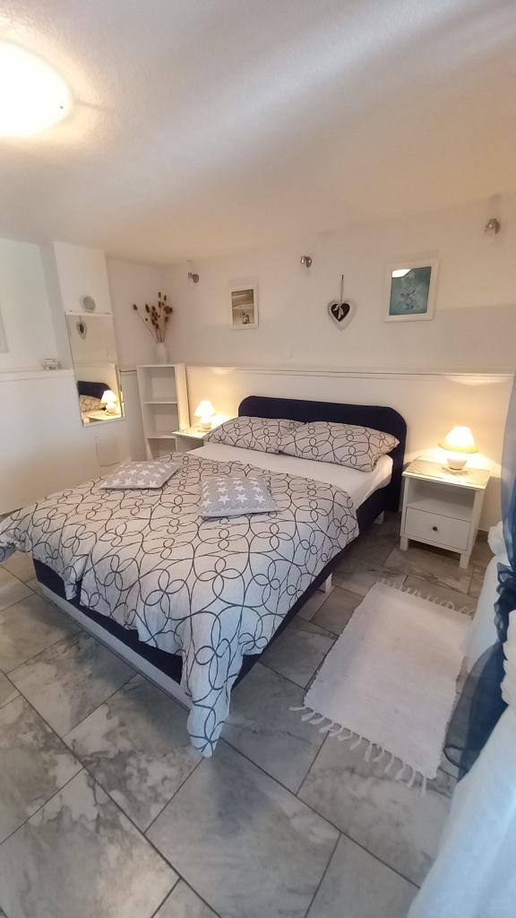 Teď mi ten názor chybí. !!! Byt je dobře zásobený, všechno je tam kromě žehličky a fénu, musíte si ho vzít s sebou. Vše je zařízeno s chutí, moderní a čisté. Srážka hvězd, protože v místnosti pod střechou není klimatizace, ventilátor nemohl odolat teplu. Paní Svobová byla velmi milá a ochotná. Nebylo to daleko na pláž. Do centra města, kde najdete spoustu restaurací a kaváren ve večerních hodinách, je to také jen 5 minut. Konsum Market a pekárna také v centru města. Lidl je také k dispozici ve městě. Byly tam také parkovací místa. Celkově vzato mohu jen doporučit! Zdravím rodiny Svobových!