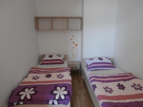 Plně vybavené a moderní nové apartmány se nachází v klidné části města Novi Vinodolski, s krásným výhledem na město, moře, ostrov Krk a Senj dveří. Nemovitost se nachází pouhých 5 minut. chůze od pláže. Pobyt kratší než 3 dny cena je o 30% dražší.