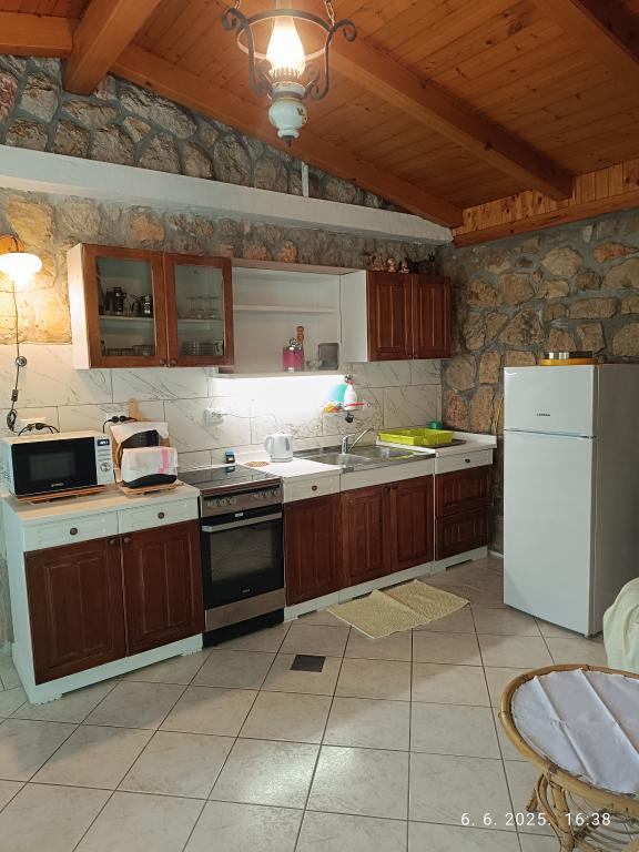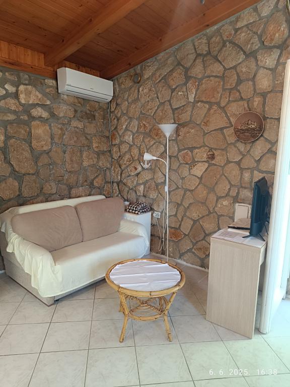 Dva větší dvoupokojové apartmány (60 m2) se nacházejí ve 2. patře domu s krásným výhledem na moře a menší jednopokojový apartmán (45 m2) se nachází v samostatném kamenném (rustikálním) domě vedle hlavní dům, se kterým sdílí zahradu a dvůr. Bezplatné parkování zajištěno. Gril s terasou na zahradě je společný pro všechny hosty. Vzdálenost od moře je cca. 250m z kopce, kde je promenáda s restauracemi a různé druhy pláží. Vzdálenost do centra je cca 1,5 km, po promenádě u moře.
