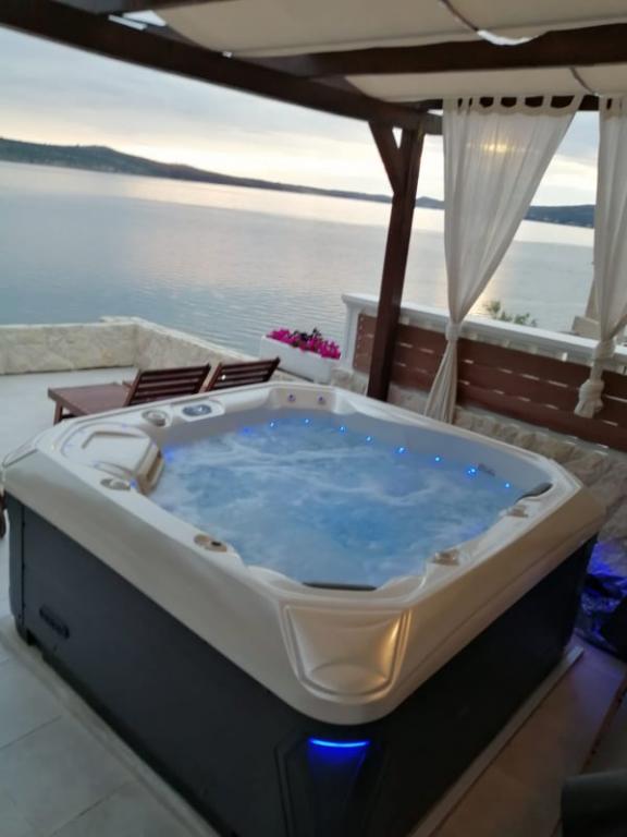 Nabízíme dva plně vybavené apartmány s krásnou zahradou. Terasy nabízejí gril a kvalitní venkovní nábytek. Větší apartmán v prvním patře má jacuzzi na velké terase, výhradně pro použití hostů velkého apartmánu. Zařízení se nachází v bezprostřední blízkosti pláže a terasa nabízí nádherný výhled na moře Velebit. Do centra Novigradu vzdáleného 500 m se dostanete klidnou procházkou podél moře. V Novigradu je k dispozici bezplatné parkoviště. Město Zadar je vzdálené 30 km a v okolí, ve vzdálenosti 20 až 120 km, se nacházejí 4 národní parky / Paklenica, Vodopády Krka, Národní park Kornati a Plitvická jezera. Letiště je 15 km od apartmánu.