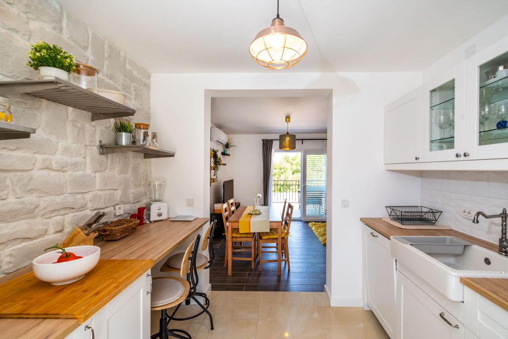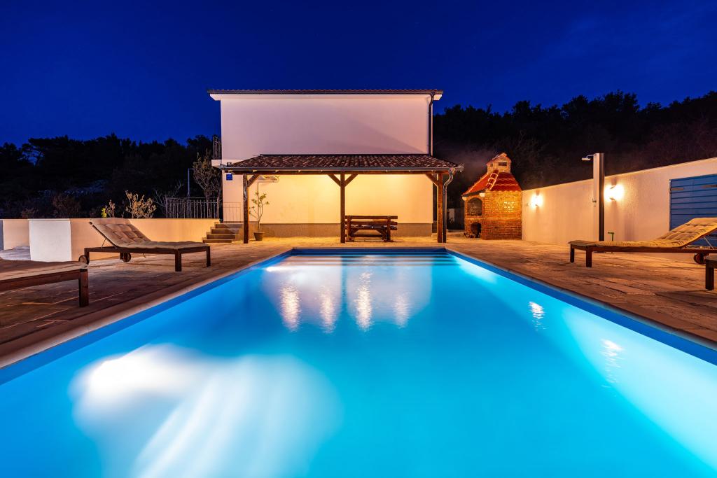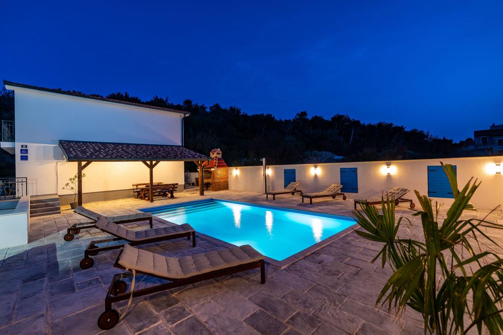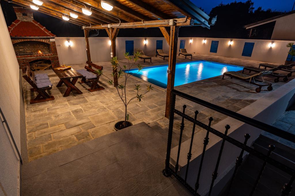Rytířský dům Novigrad / Rytířský dům Novigrad je kompletně zrekonstruovaný dům pro luxusní dovolenou, s venkovním grilem a velkým 8x4m bazénem. Nachází se v malém turistickém dalmatském městě, s nádherným otevřeným výhledem na Velebit, na konci slepé uličky, kde je klid a klid v nejtěžším shonu. Dům má 2 apartmány. Celková kapacita 12 osob. Lze si pronajmout celý nebo jednotlivý byt pro 6 osob. Apartmány jsou 3s, v přízemí a nahoře. Vybaveny moderními novými kuchyněmi s myčkou nádobí, koupelnami s prostornými sprchovými kouty, TV s plochou obrazovkou a každou s 1 ložnicí s manželskou postelí King a 1 pokoj se 2 samostatnými postelemi. Obyvatelé mají nové kvalitní pohovky, které sahají do postele velikosti King. V patře je balkon s výhledem na moře, dolní byt má vlastní velkou terasu. K dispozici je společný velký dlážděný dvůr, oplocený a uzavřený, velký gril a bazén s 8 pohodlnými lehátky. Dům je luxusně zařízený, se spoustou péče a pozornosti, pro vaši příjemnou a odpočinkovou dovolenou.