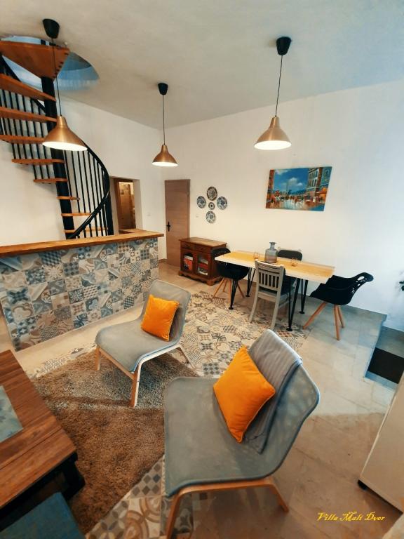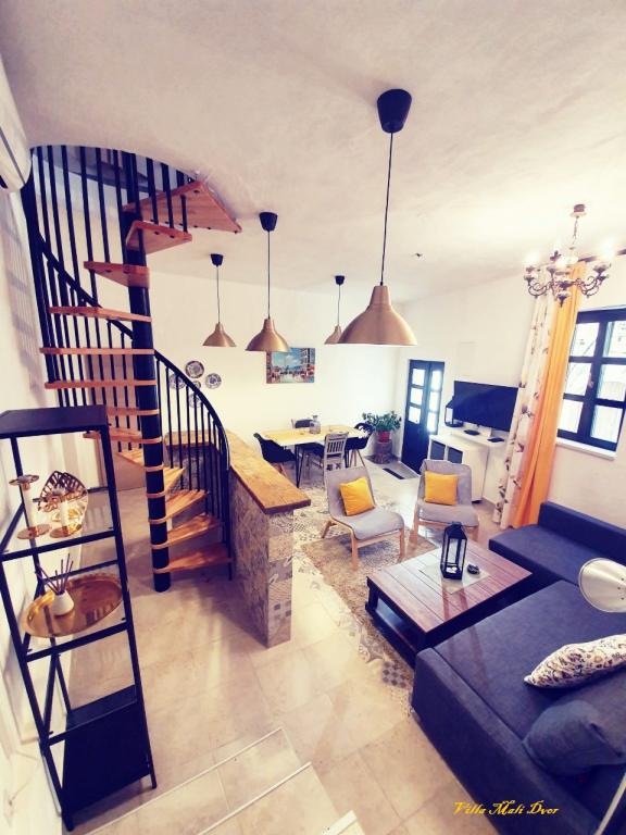 Villa Mali Dvor se nachází v centru starého města Novigrad. Nově postavený, plně zařízený a vybavený. Skládá se z přízemí a prvního patra. V přízemí se nachází kuchyň, jídelna, obývací pokoj, 2 WC a samostatná koupelna se sprchovým koutem, v přízemí jsou dvě ložnice, z nichž jedna má přístup na terasu, která je částečně krytá a vybavená grilem a nábytkem pro relaxaci. V ložnicích a obývacím pokoji a jídelně najdete klimatizaci. Vila se nachází v centru akcí a veškeré potřebné vybavení, jako je pošta, obchody, restaurace ... moře a nábřeží je 6 metrů od vily, první pláž je 5 minut chůze.