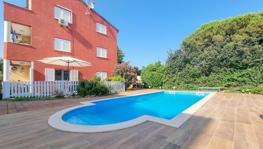 Vítejte v tomto krásném apartmánu, který se nachází v malebném městečku Novigrad na Istrii. Toto ubytování se nachází na vynikajícím místě a nabízí dokonalou kombinaci pohodlí a luxusu, což z něj činí ideální útočiště pro vaši dovolenou. Apartmán se může pochlubit společným bazénem, který vás zve k relaxaci v osvěžujících vodách a zároveň si užíváte teplého středomořského slunce. Nemovitost obklopuje krásně upravená zahrada, která vytváří klidnou oázu pro relaxaci. Pro ty, kteří mají rádi venkovní stolování a posezení, je k dispozici grilovací zařízení, které umocní váš kulinářský zážitek. Zůstaňte ve spojení se světem pomocí bezplatného Wi-Fi a bezplatného soukromého parkoviště pro vaše pohodlí. Apartmán má strategickou polohu, pláž Sirena je vzdálená pouhých 2,1 km a vzrušující aquapark Istralandia jen 5,7 km od domu. Vstupte do prostorného bytu a objevte útočiště pohodlí. Tato rezidence se 2 ložnicemi, promyšleně navrženým obývacím pokojem a terasou poskytuje útulnou atmosféru.