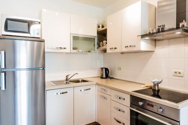 Moderně zařízený byt se nachází v klidné čtvrti, v blízkosti moře. Byt se skládá ze 2 ložnic, kuchyně, koupelna, obývací pokoj, jídelna (s možností 2 přistýlek) a balkonem s výhledem na moře. K bytu náleží oplocená parkovací místo. Budova, ve které sídlí aplikace má pěkný dvůr a přední část budovy je multi-účel hřiště a malý park pro herní místnost a děti.